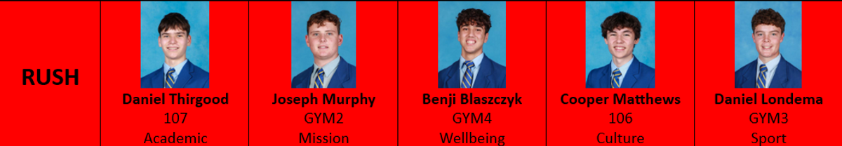 With the appointment of new leaders (starting work next term) I would also like to take a moment to thank the current House Leaders for all of their work with, and support of, me, the staff and the Rush boys this year. They set a positive tone from the beginning of the year, which helped us build community and culture, and see success in many House events (and even placing first on the House Cup for a while this year). Thank you: