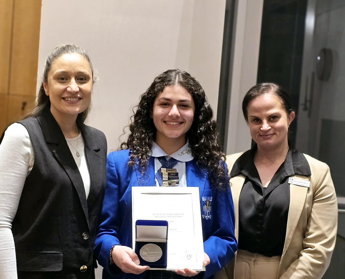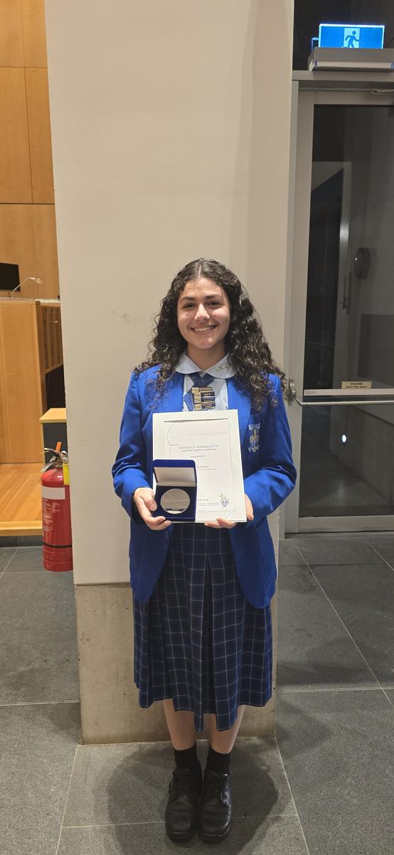 Congratulations to Rita Raffoul of Year 12 on receiving the prestigious Bishop of Parramatta Award! This remarkable achievement recognises her outstanding dedication, service, and contribution to the community. Rita's unwavering commitment and compassion have made a lasting impact, and this honour is a well-deserved testament to her hard work and exemplary leadership.