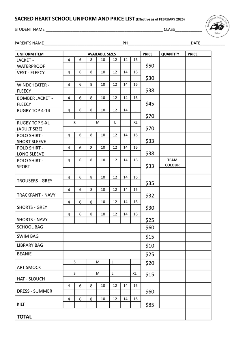 It is important that we have up to date contact details on hand at all times. At any stage if the following details change throughout the year could you please contact the school office at your earliest possible convenience.