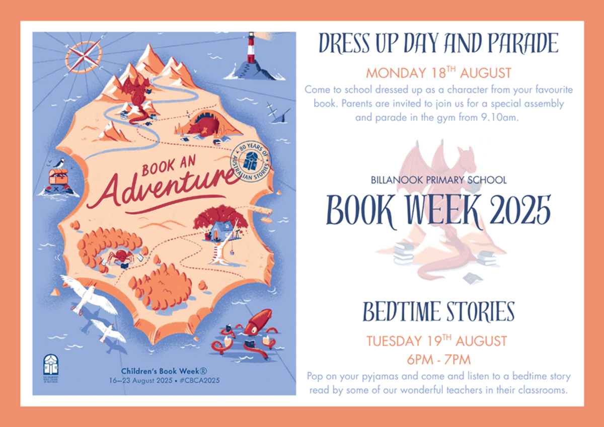 We will be holding our annual Book Week dress up day on Monday 18 August. We will be having an early assembly on this day at 9:10am in the Gym. We will be celebrating our children who have dressed up and their love of reading.