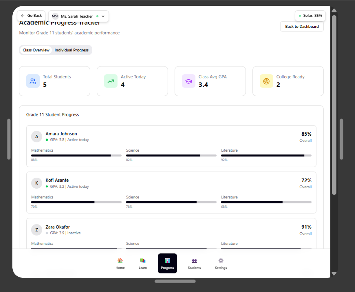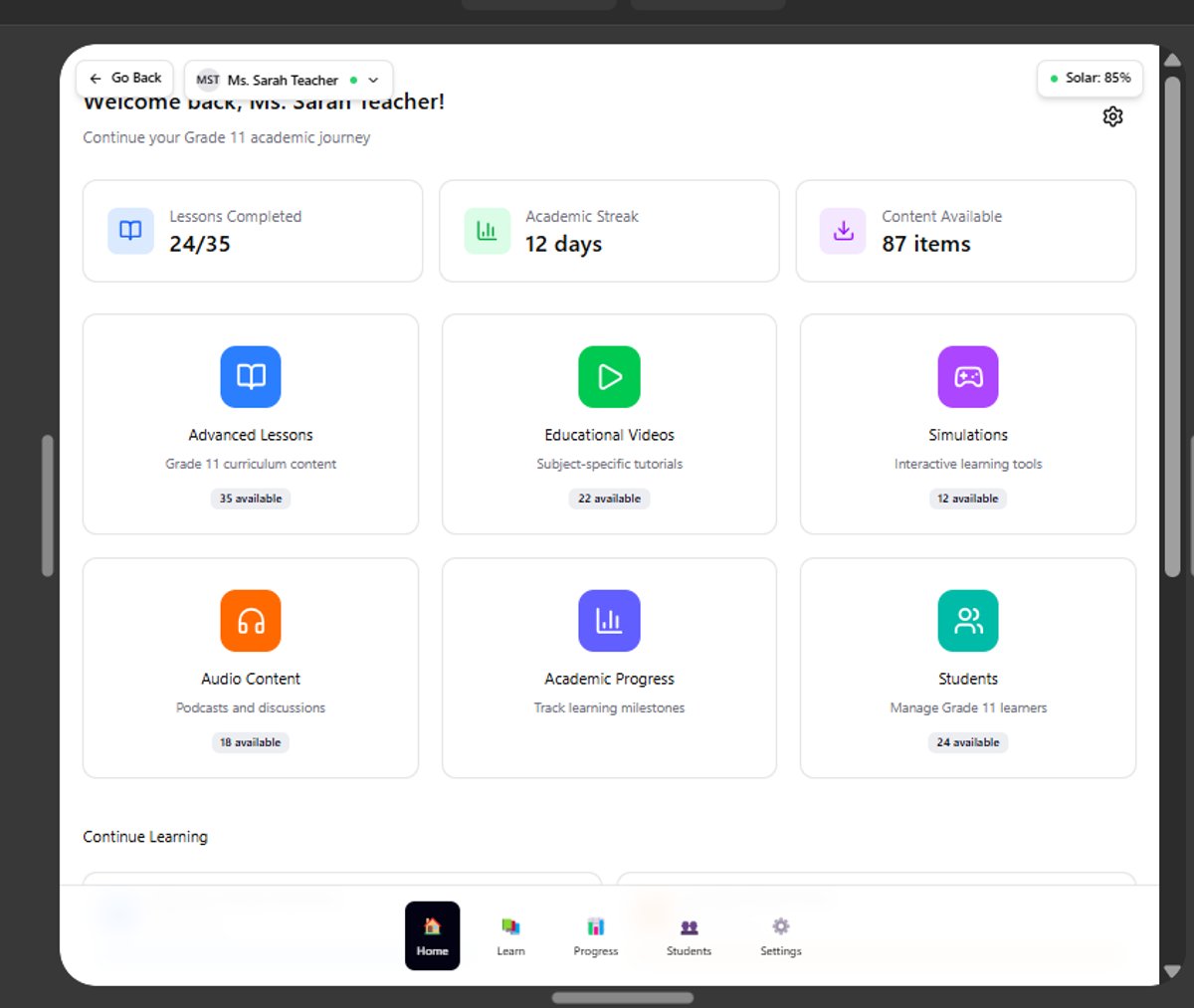 Addressing the global challenge of equitable education access, Steve and Sorosh designed a self-sustainable tablet that functions as an offline learning hub. Their solution provides accessible learning tools for students in remote areas, ensuring education is available anytime, anywhere — even without internet access.