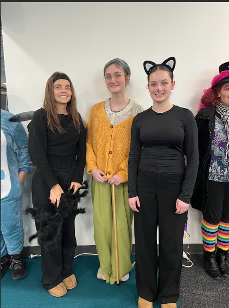 Yr 12: Taylah Corkery, Shantae Joyce-Pohlman, & Clover Scandrett-Hancock, who were the Old Lady Who Swallowed the Fly (and the Fly, and I'm not sure if there was a Spider or a Cat)