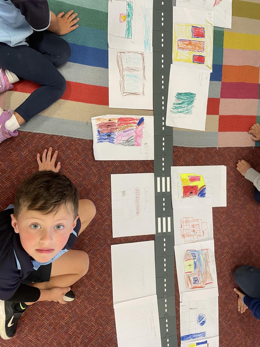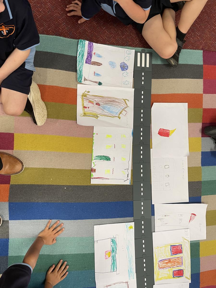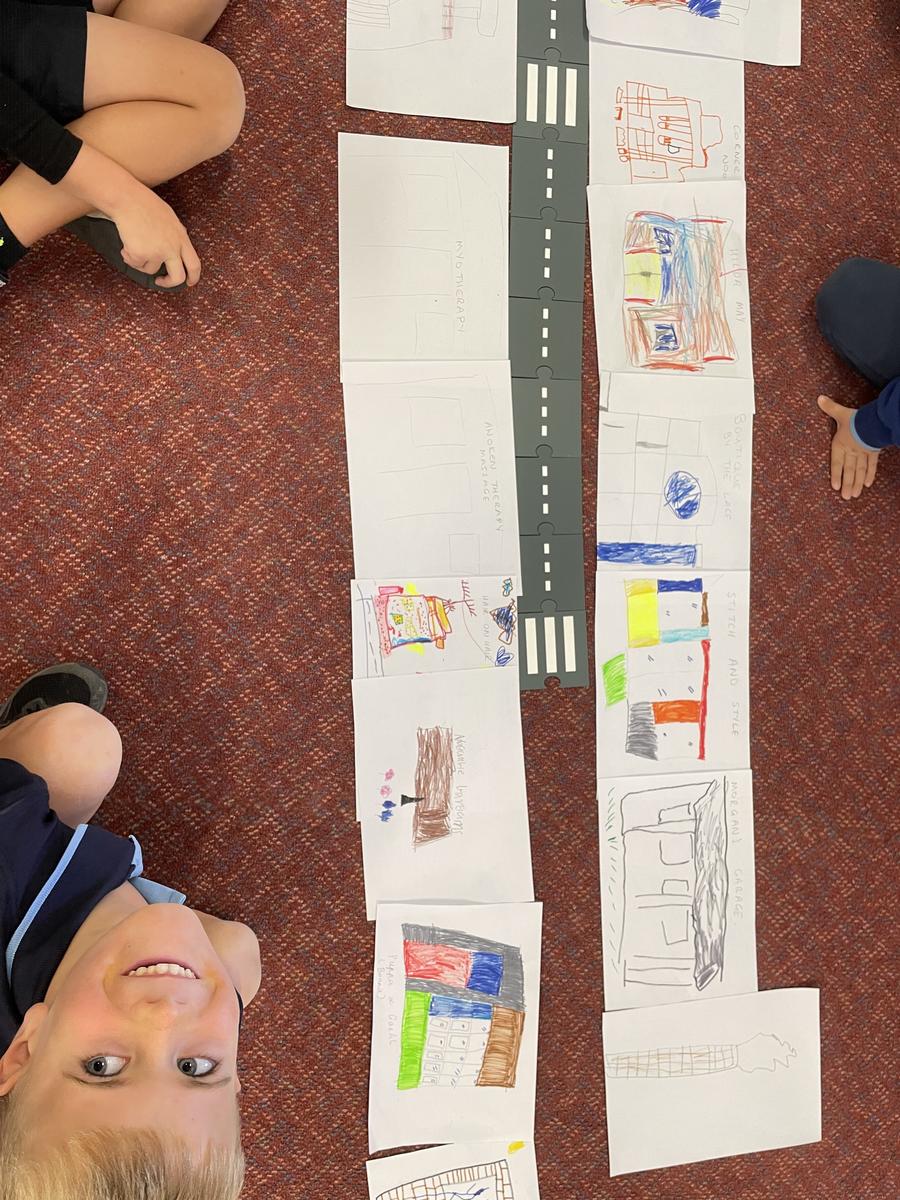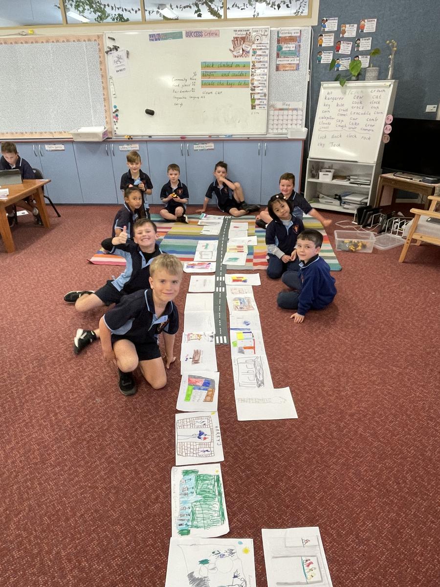 As part of our unit on ‘Connection’ the students discussed their knowledge of the wider community and the businesses in the main street of Nagambie. We then illustrated our favourite shops and created our own little map of Nagambie, using language such as ‘next to’, ‘in front of’, ‘behind’, ‘closer’ and ‘further’ to describe where each shop is located.
