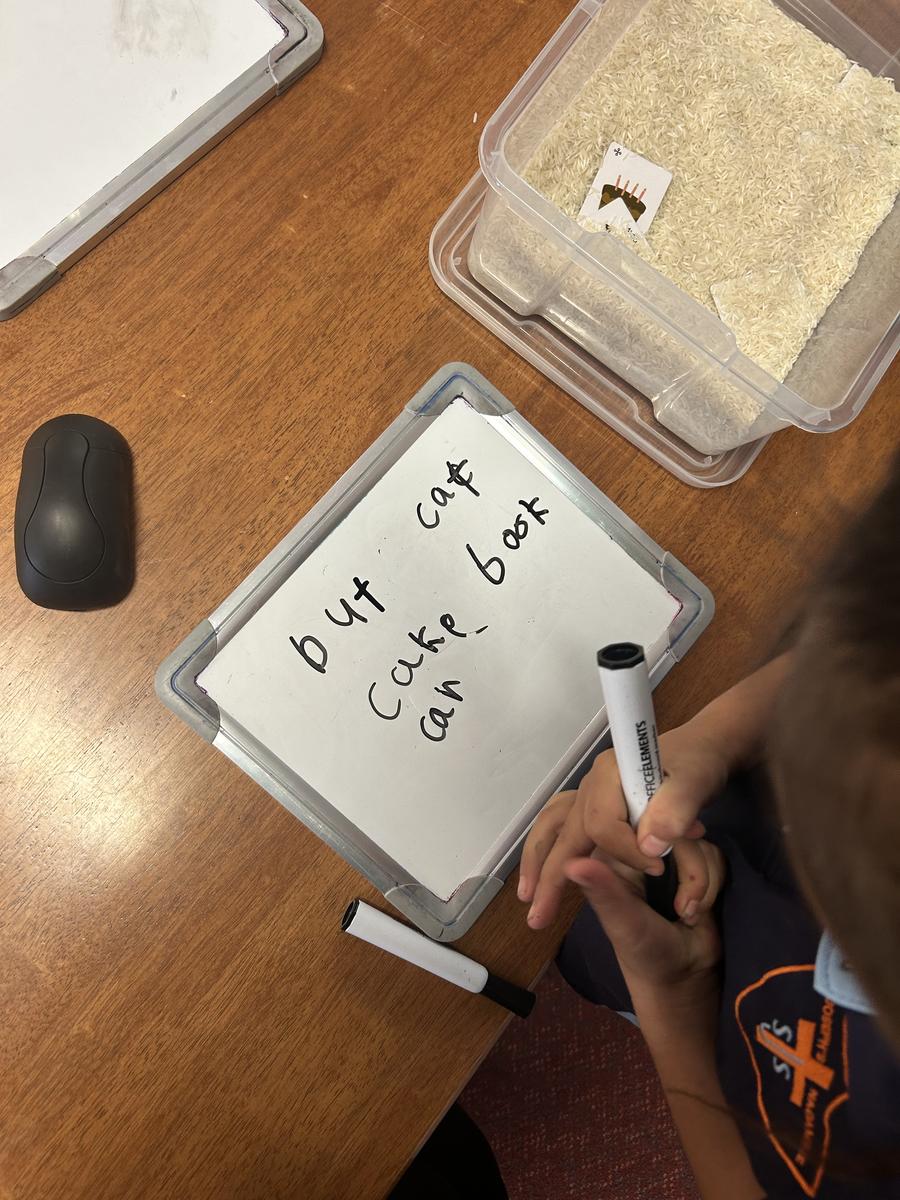 Our tasks have been based around practicing the c/c/ck sound, building and decoding simple words and our letter formation and fine motor skills.