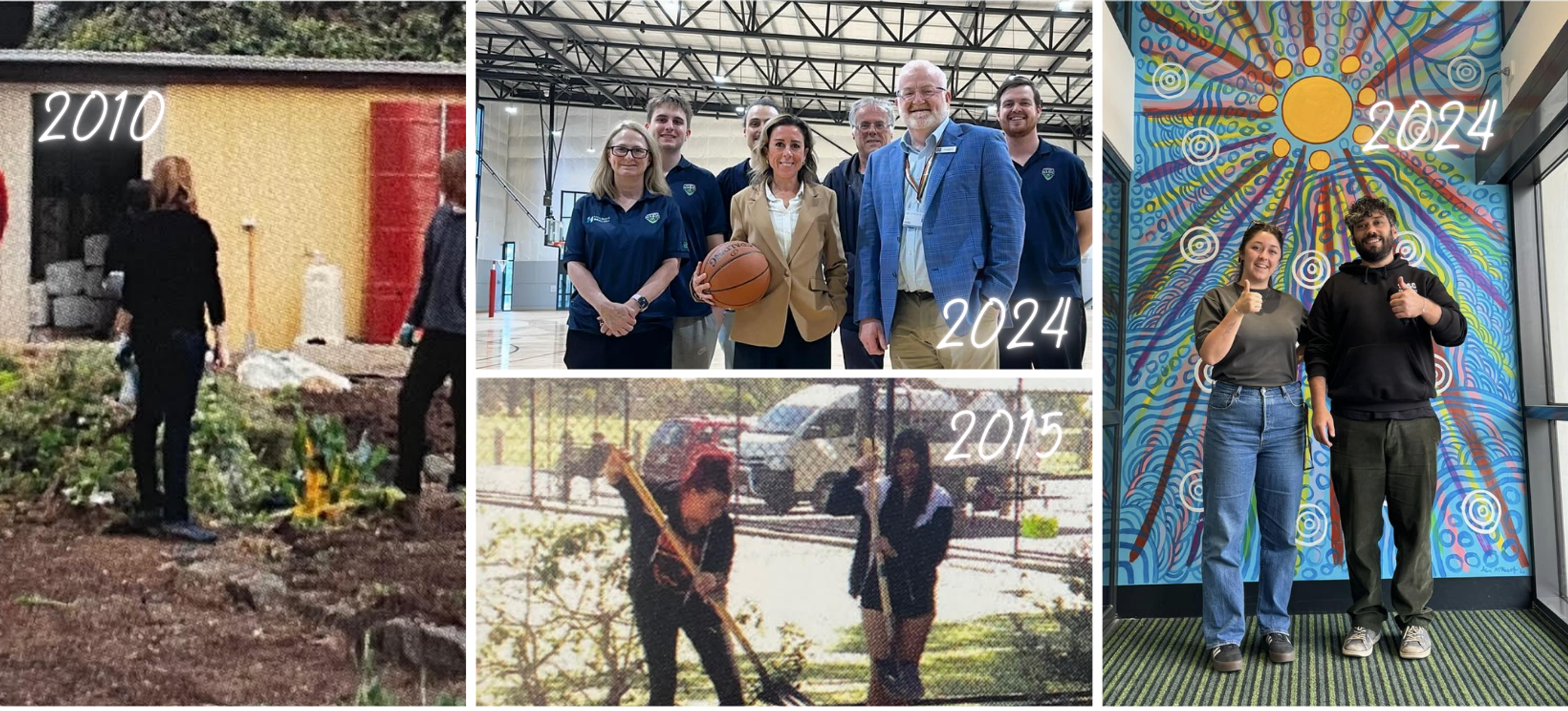 In term 2 Swinburne Senior Secondary College opened a brand-new sport centre, located at Camberwell Road. The site was home to VCAL garden projects over many years - including in 2010 and 2015, when the photos on the left and bottom centre were taken.