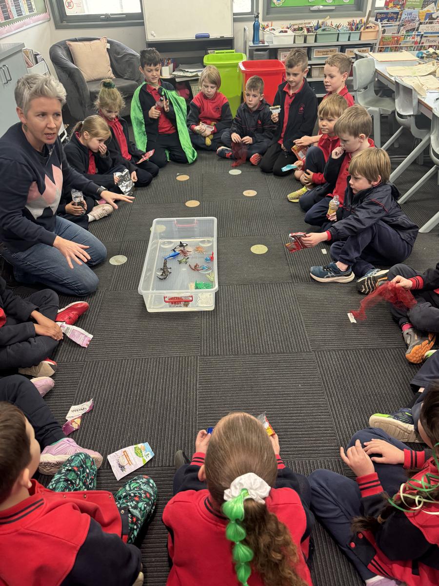 The enthusiastic Green Team members from Years 3 to 6 continue to meet with Mrs Alexander and Mrs Stokol each Wednesday lunchtime. Meetings begin with a check-in on how the yard cleaning roster is going. Students report which areas are the cleanest, which need more attention, and share ideas for improvement.