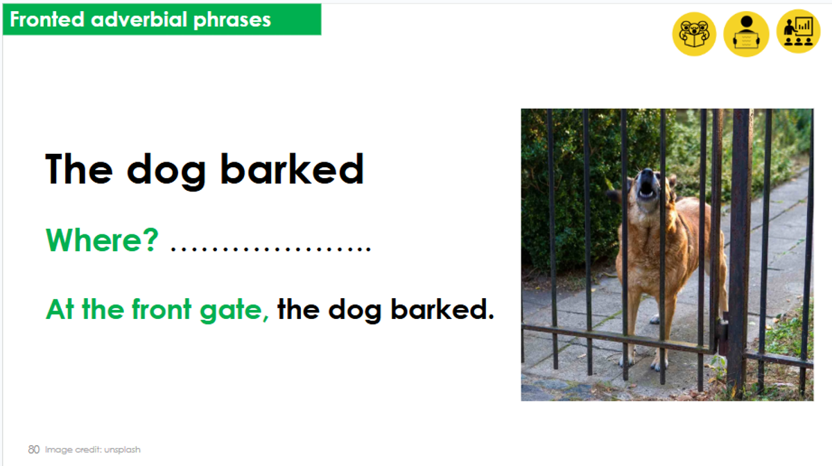 In Sentence-Level Writing, we have been learning about fronted adverbials.This is when we add a how, when, or where adverb at the start of a simple sentence to expand it. For example: