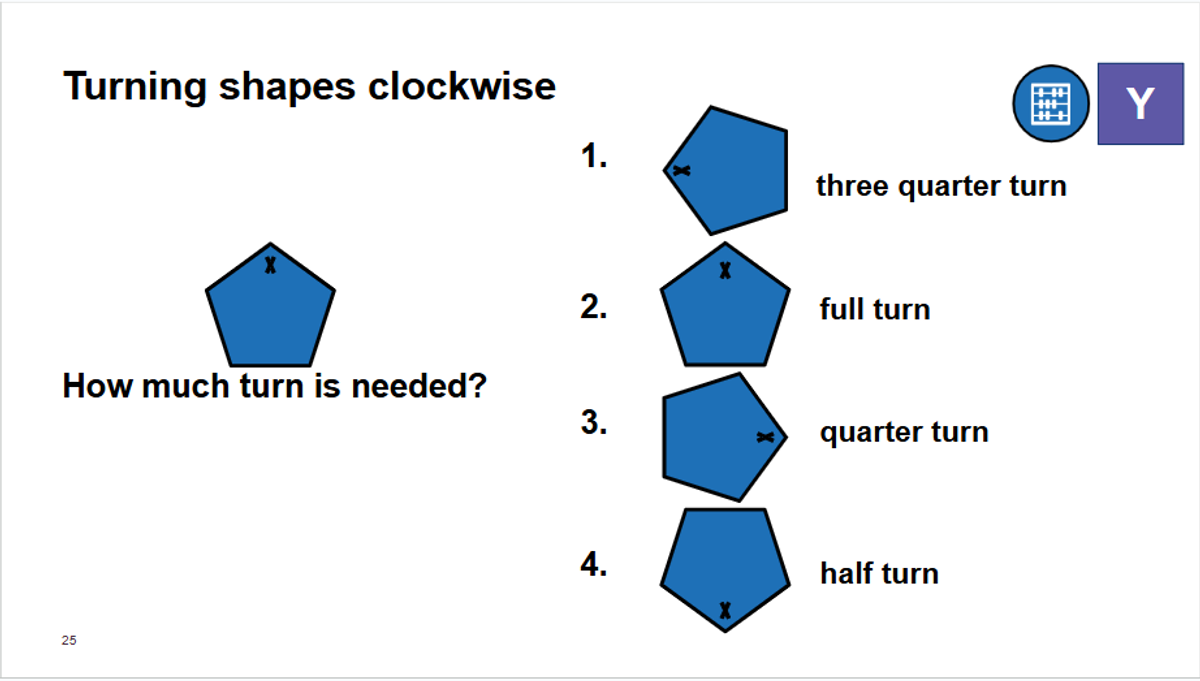 In our Applied Topic on Time, students have completed their learning on clockwise, anticlockwise, quarter turns, half turns, three-quarter turns, and full turns. They have been using clocks to determine how far and in which direction the hand has moved, as well as using shapes to identify turns.