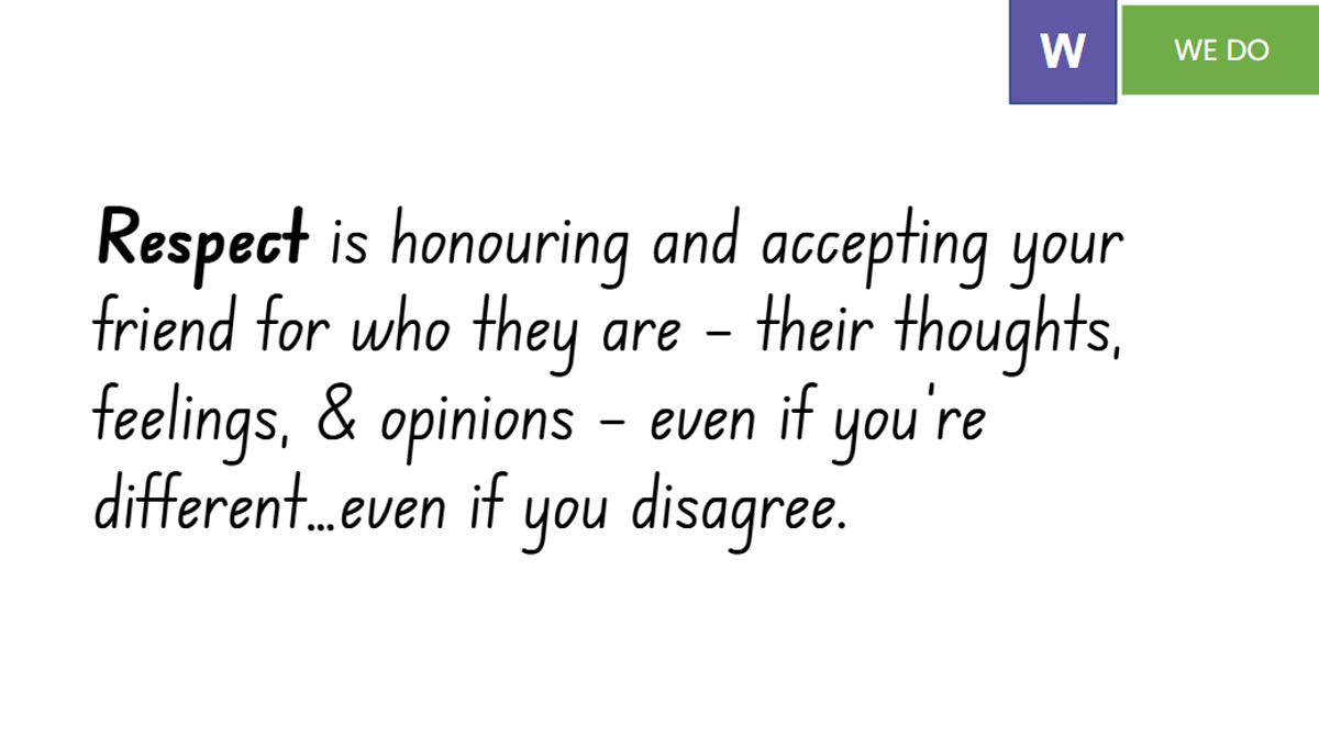 Over the past fortnight, Grade 2 students have revisited the Friendology resources to explore the meaning of respect and strategies for making new friends. They were reminded of Friendship Fact #3: Trust and Respect are the two most important qualities of a friendship.