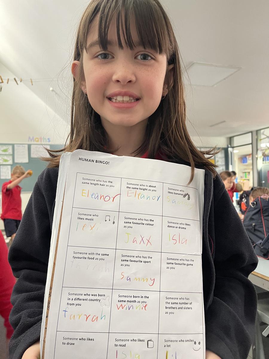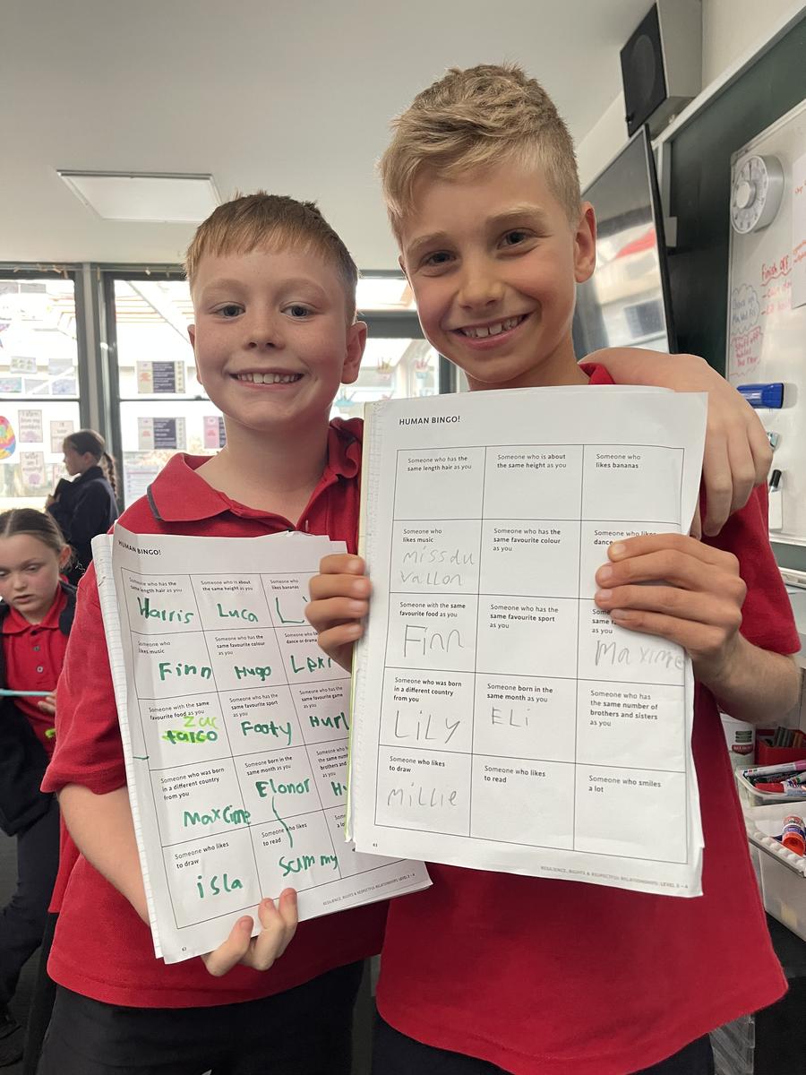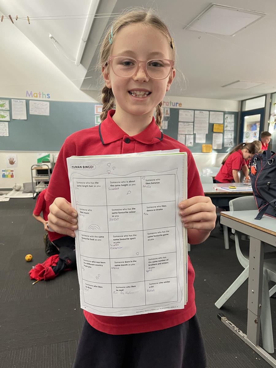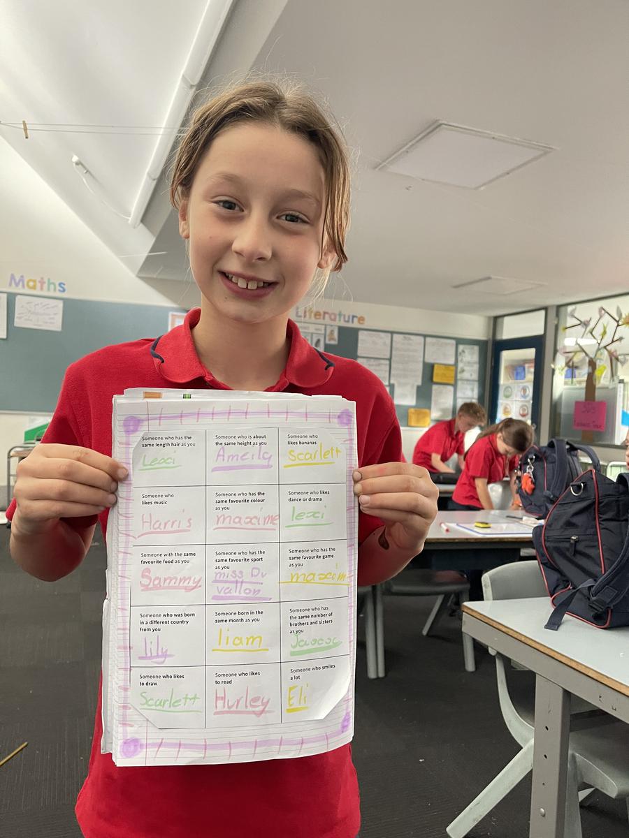 This fortnight, students began exploring the concept of identity. They played a āhuman bingoā game to highlight similarities and differences, discussing how these make us unique and interesting individuals. Students then completed an identity wheel, highlighting important parts of their identity and sharing with the class.