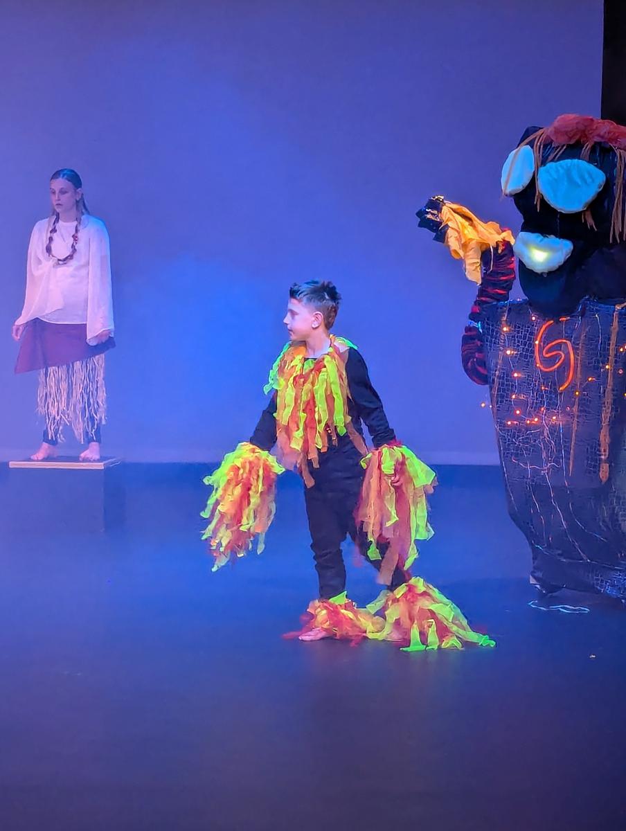 "When I went on the bus I started to feel scared. It didn’t feel like the real thing—I was just nervous. And when the curtains opened, it felt worse. The first line came, and all the ancestors walked on in the beginning. I hid behind the side of the curtain and then came my first line: ‘I know why the coconuts are black.’ Shockingly, I didn’t have to talk loud—the mic worked. I remember getting miked up; it really hurt. But the show went really well. The cast and I would like to thank Mrs Higgins for leading us, and everyone who came and supported our school."