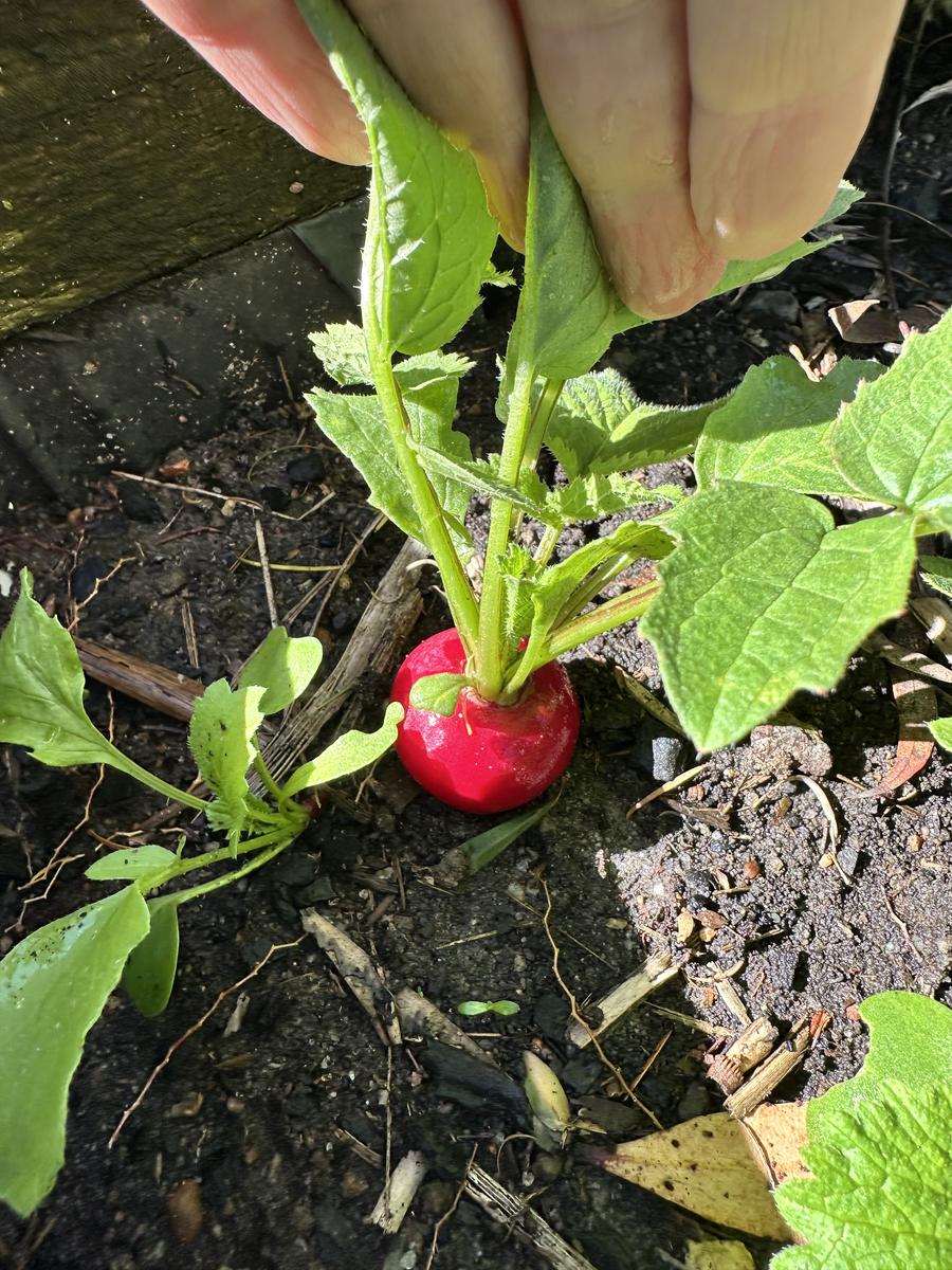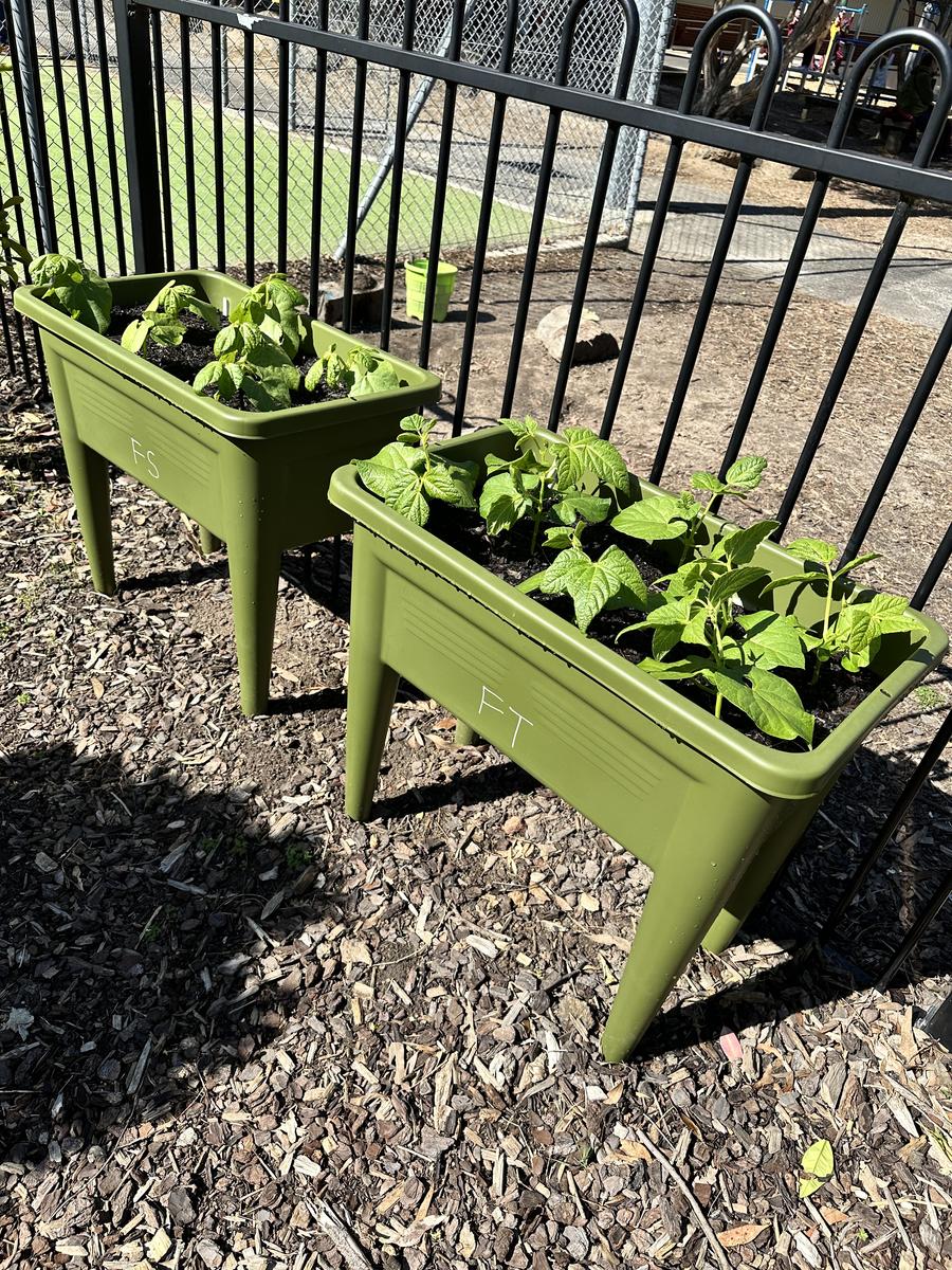 We are starting to get some delicious snow peas and our radishes are ready for eating! Some of our fruit trees are starting to flower, and everything is starting to look fantastic. Spring is an awesome month in the garden! The foundies’ green raised beds have beans coming up in all of them too.