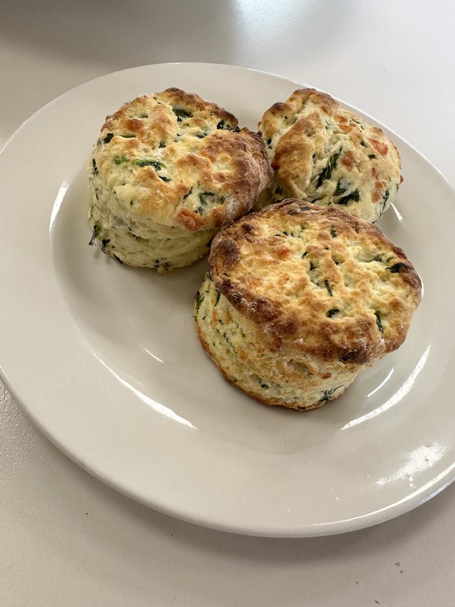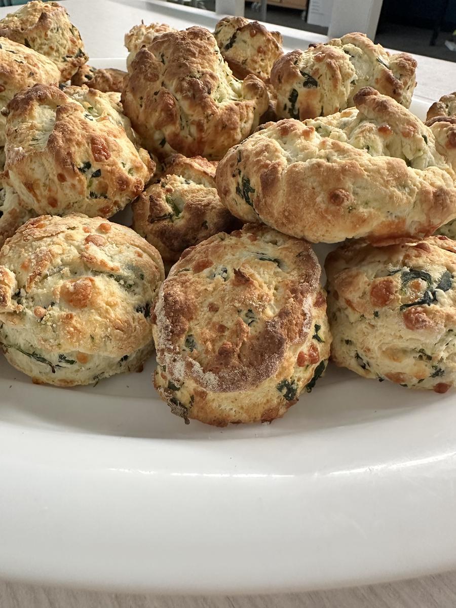 In the kitchen we are making cheese and warrigal greens scones with the foundies first before moving onto something else .