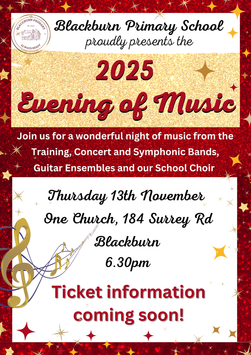 Students currently in Grades 2 to 5 who may be keen to join the 2026 Band Program may also like to attend this concert - so please note the date in your diaries!