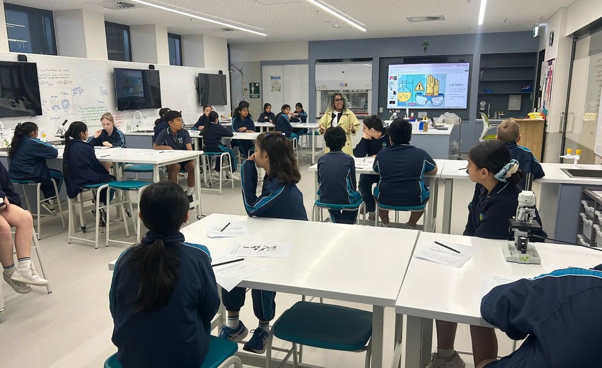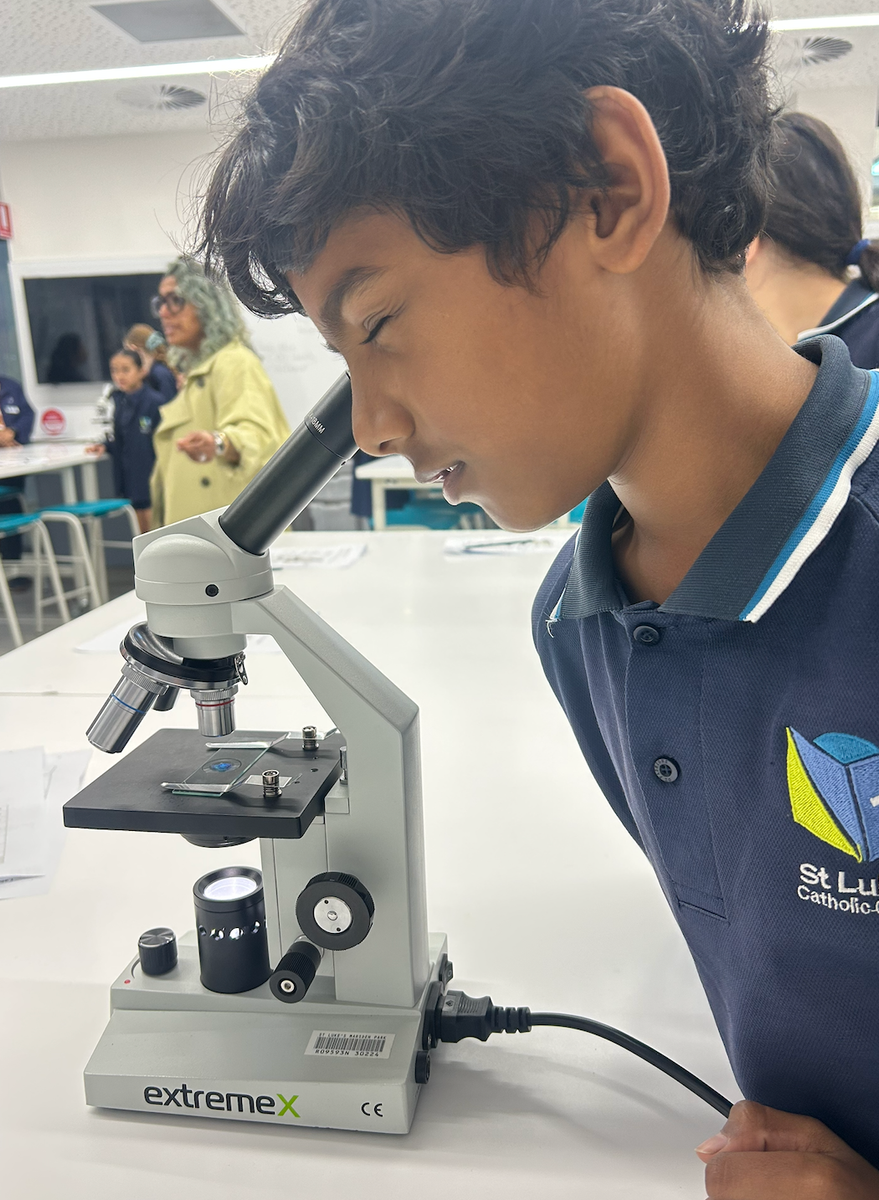 In the science lab, we got to look at tiny cells using a microscope. It was a really cool experience that I might not get to do til year 7. Ms McAllister explained it really well and told us all the different parts of the microscope. I hope we get to do it again soon.