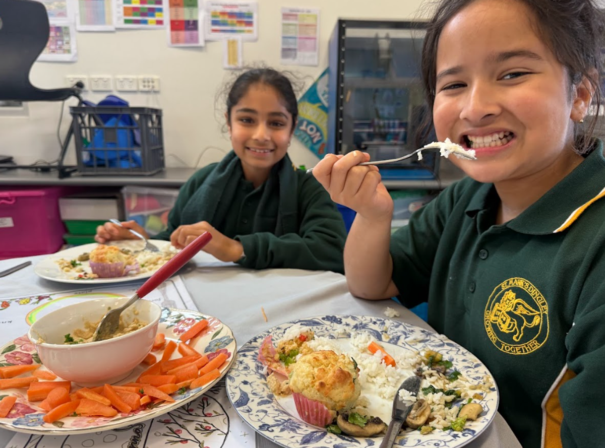 Mahanya - Today I made The Bread with my group. We made asparagus muffins. I chopped the asparagus neatly and focused on my fingers so I didn't get a cut. I also got to mix a lot of ingredients together like salt, yoghurt, eggs, flour etc. After the class finished cooking I got to wash the dishes.