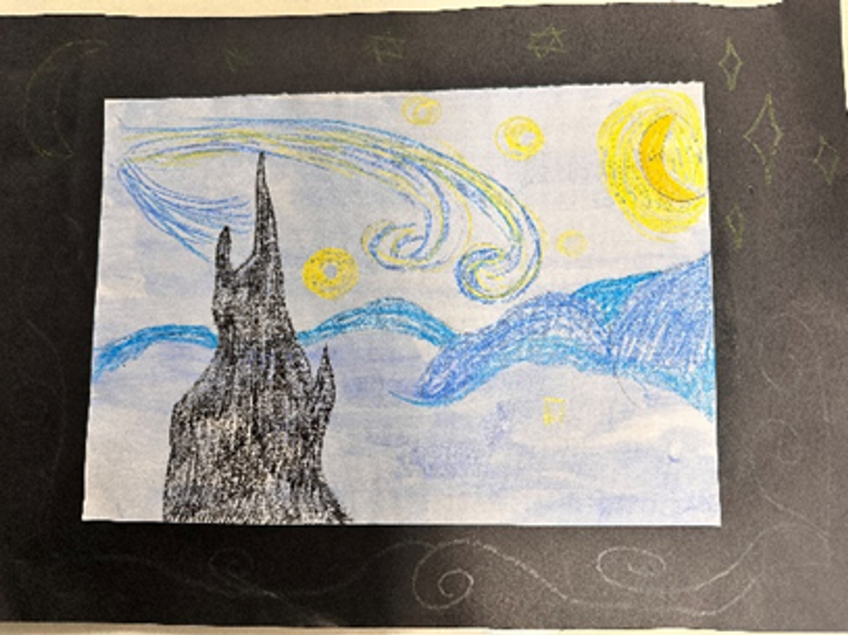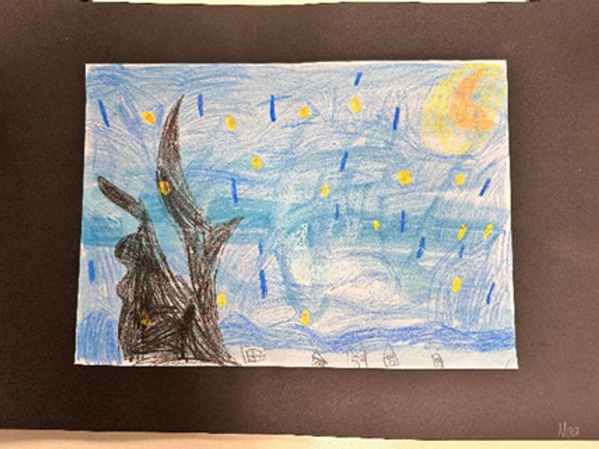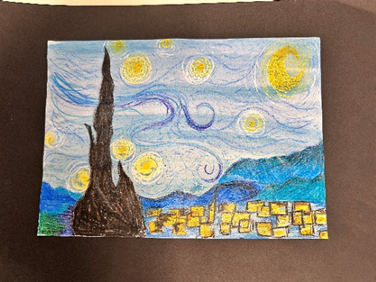 On Monday, the Prep students held their Open Afternoon, showcasing their work on art appreciation. They have been learning to observe art closely, focusing on the feelings, emotions and techniques used by the artist. They explored Vincent van Gogh’s Starry Night, examining what makes the painting unique and are experimenting with different materials to create their own interpretations. Please see below for examples of their work.