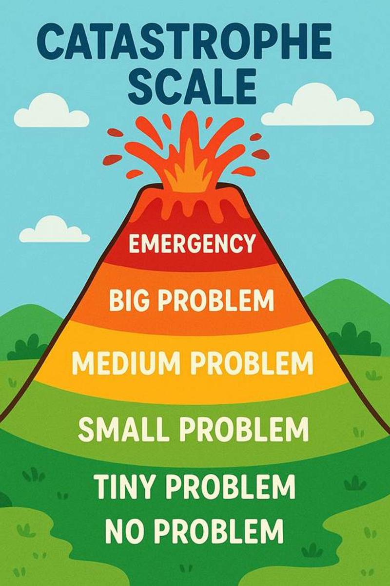 You might be wondering: What is the Catastrophe Scale? Simply put, it’s a visual tool that helps children learn to rate the size of their problems. It encourages them to pause, reflect, and ask themselves: Is this a small problem, a medium one, or a big one? By doing this, they begin to understand that not every challenge is a catastrophe and that they have the skills to cope.