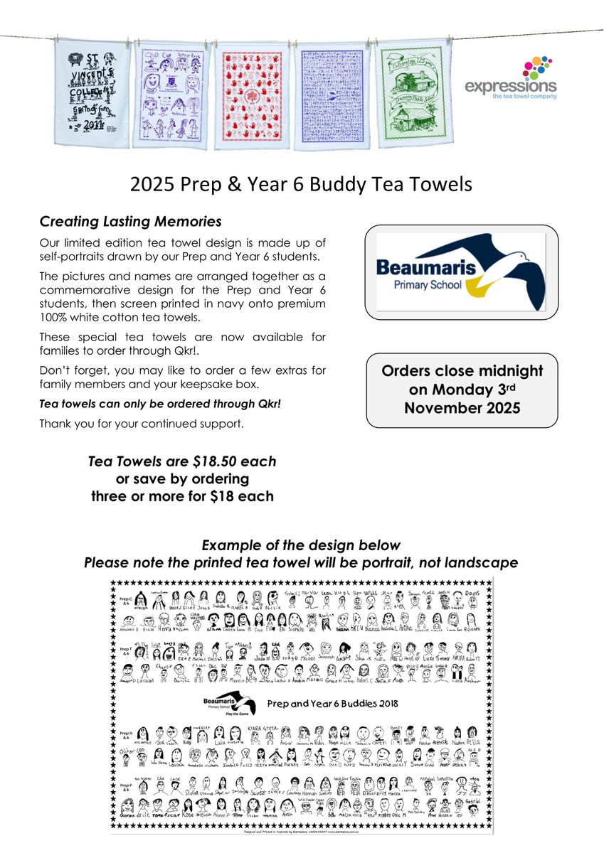 Prep & Year 6 Buddy Tea Towels - Orders Now Open!