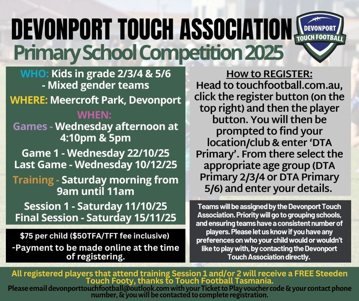 • Under 10 & Under 8 – Wednesday 1 & Thursday 2 October
