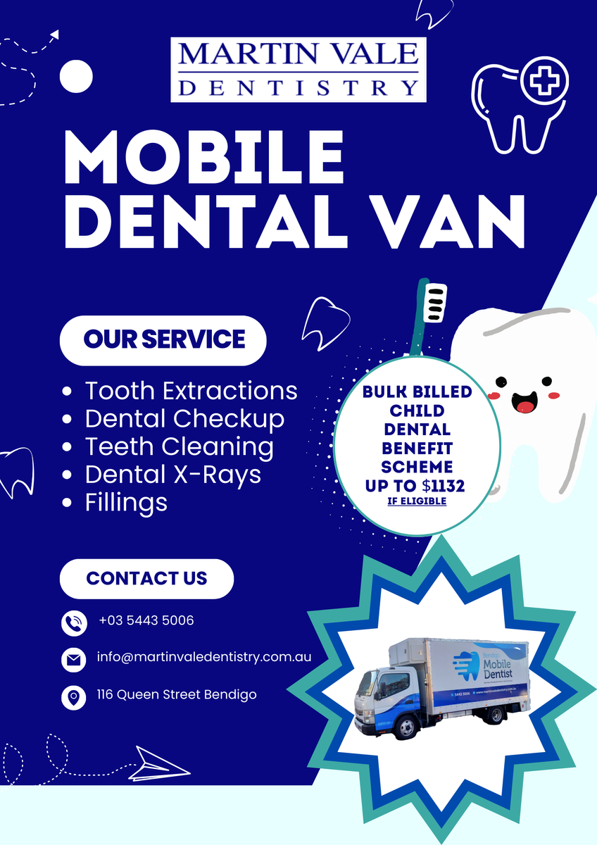 We are looking to provide a dental van service through Martin Vale Dentistry where treatment may be bulk billed through Medicare Child Dental Benefits Scheme for eligible students.