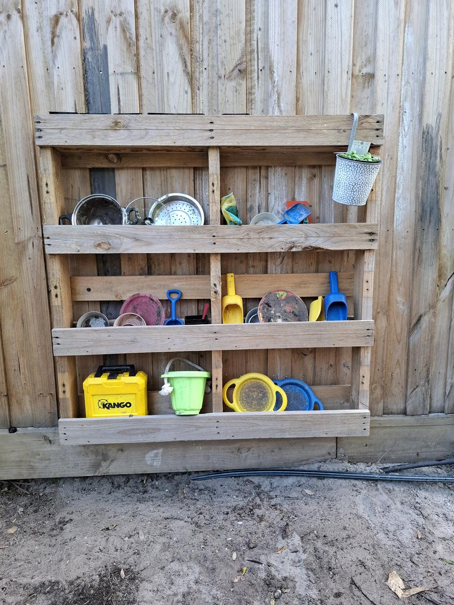 We will use it to house donated play tools and as a vertical wall for small garden pots for garden club.