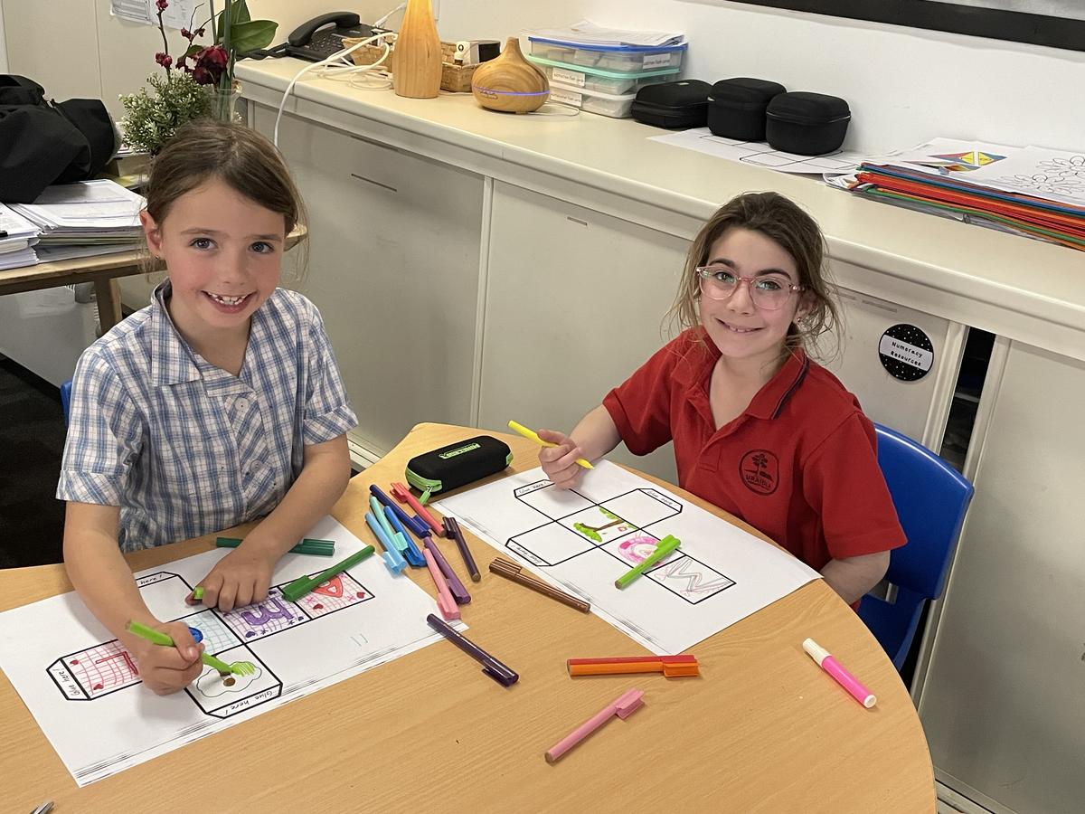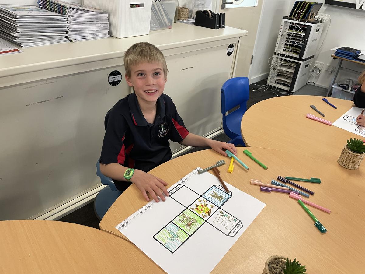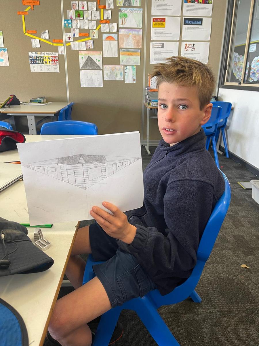 The students have started learning about fractions. Using some hands-on blocks (see the pictures) they have been able to see how a whole number can be partitioned into fractions such as halves, quarters, thirds and fifths. The students are re-visiting persuasive writing, focusing on using powerful vocabulary to bump up their texts. The next step is to record some short clips (advertisements) to understand how persuasive texts work in the real world. For art the students learnt how to draw some simple pictures using vanishing points, as per Patrick's.