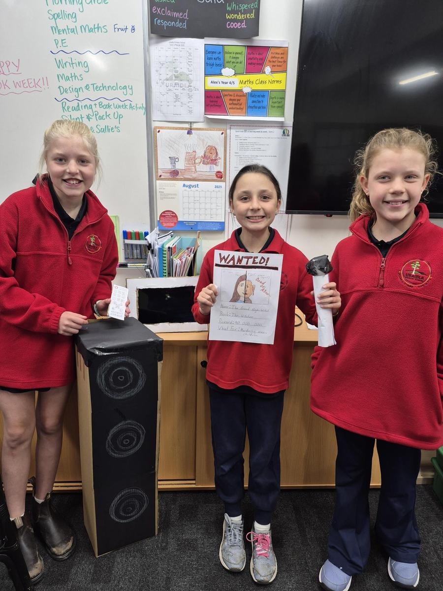 Students have been highly engaged in designing "Wanted!" posters for some of fiction's most wanted villains as part of our book week activities! News reporters Maddi, Klara and Shae are seen here reporting on the The Grand High Witch from Roald Dahl's the Witches wanted for her cruelty against children. Other characters we are on the lookout for are Moon Face from the Magic Faraway Tree, the Queen of Hearts from Alice in Wonderland, Voldemort from Harry Potter and the Big Bad Wolf from the Three Little Pigs!