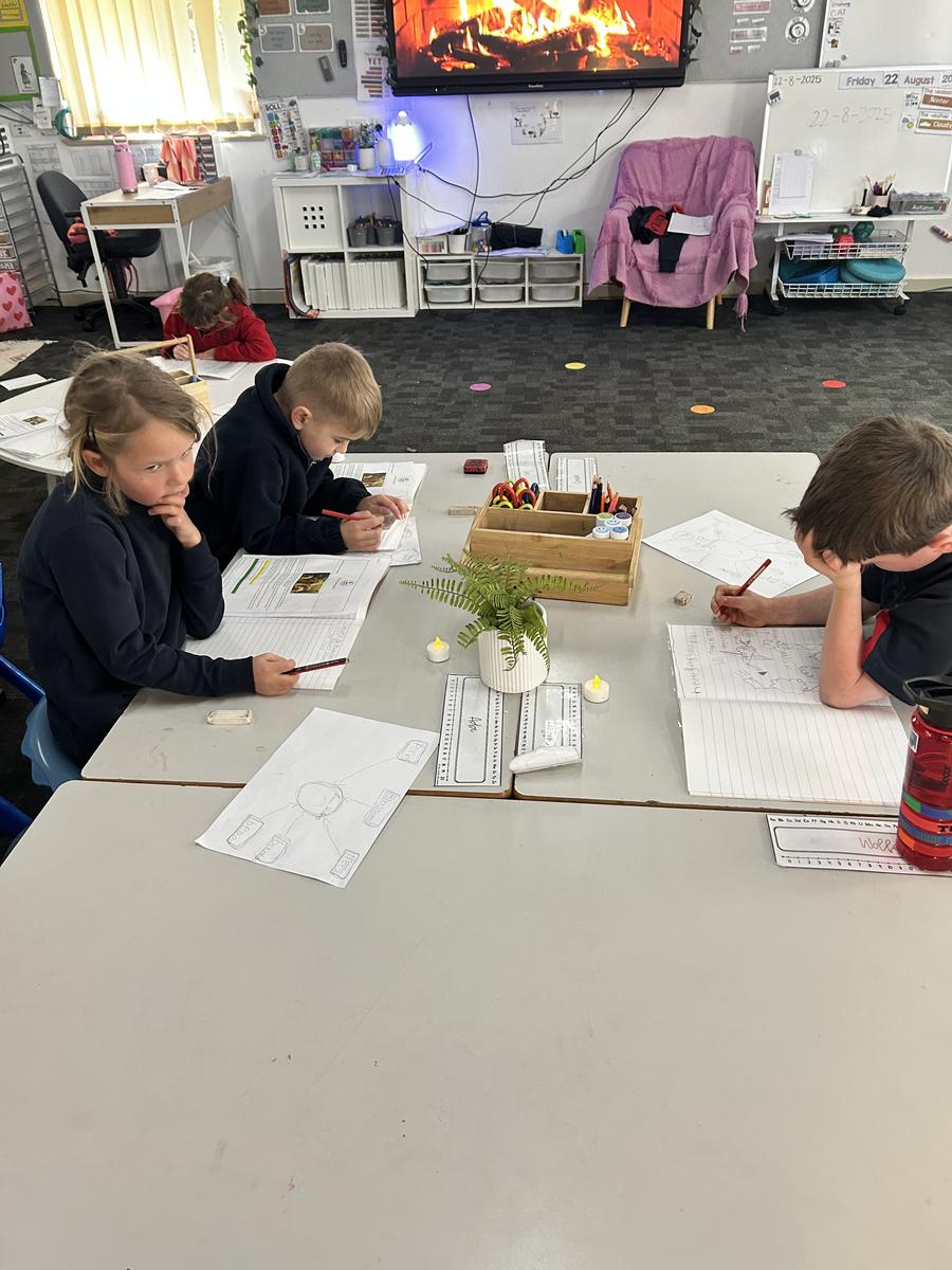 Last week, Jaya’s Reception/1s and Kelly’s Year 1/2 class teamed up with Emma’s and Katie’s classes for another exciting Big Talk and Big Write collaboration. After phonics each day, students brainstormed, planned, and explored descriptive language to help bring their writing to life. Our story prompt was: Create a creature that lives in your backyard! This theme linked beautifully with our information report focus, as students thought carefully about their creature’s features, environment, diet, and how it protects itself—just like real animals.