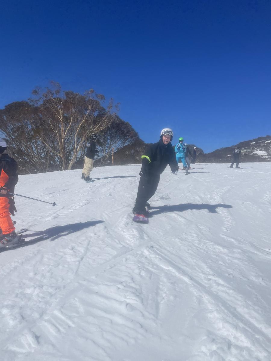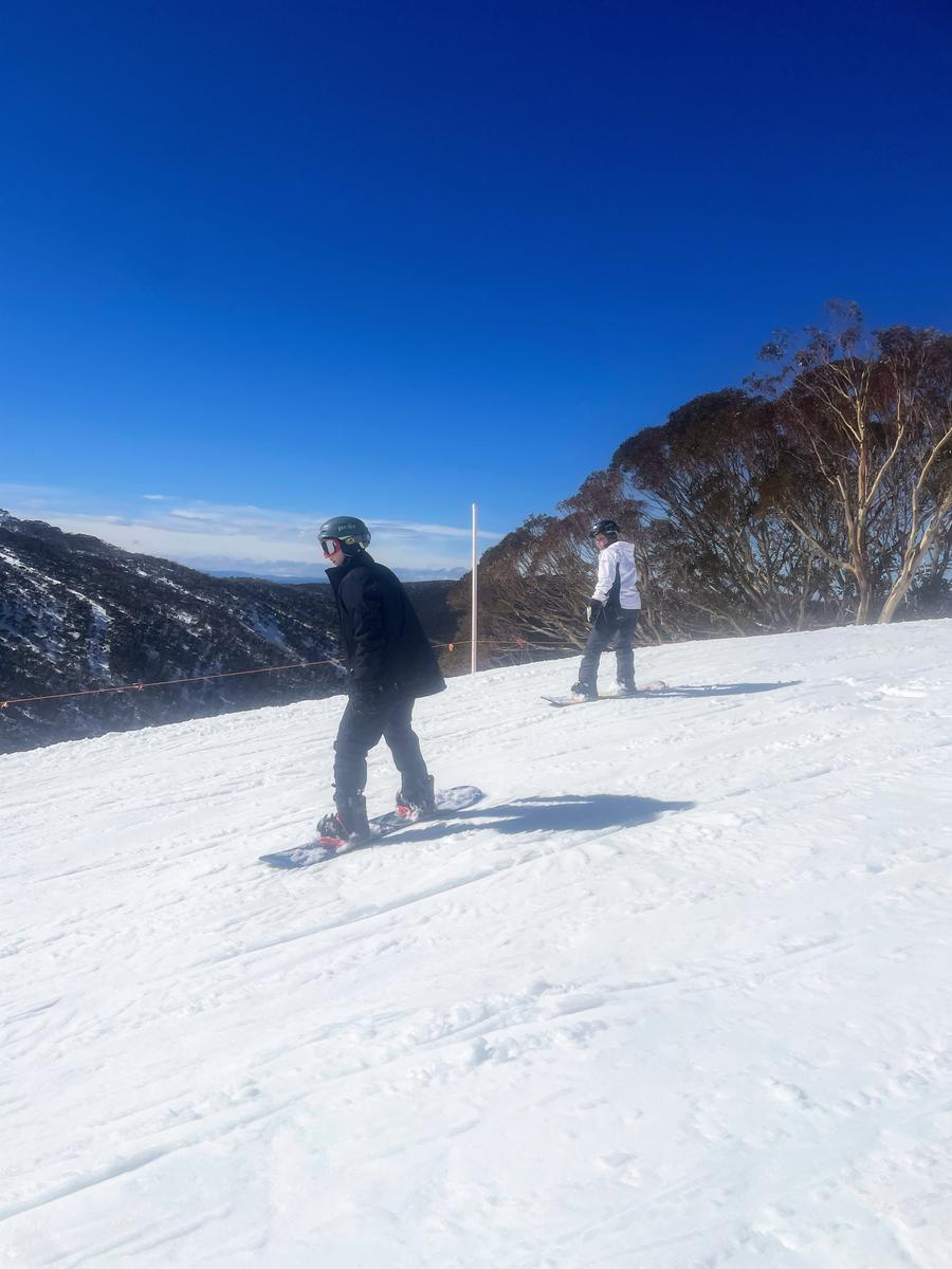 After a quick stop in Bright for lunch, Monday afternoon was spent settling into the lodge, collecting and fitting gear in preparation for snowboarding on Mount Hotham. Tuesday, we were up bright and early (6:00am) so that we could make it up the mountain for our morning lesson. After the lesson on Tuesday, we enjoyed a lunch at the General Hotel before heading out in the afternoon to practice new skills in small groups supervised by GSC staff. By the end of Day 1, most students had ridden a lift and were gaining confidence in their abilities!