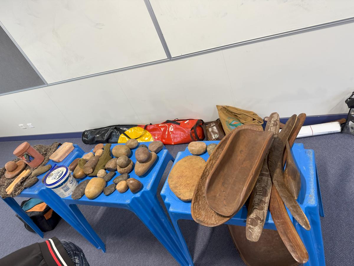 On the 2nd of September the First Nations students had a cultural incursion with Wamba Wamba elder, Uncle Ron Murray. The students learnt about smoking ceremonies including how, where and why they are conducted, and where they can do a welcome to country as an indigenous person. Uncle Ron brought along his collection of cultural items for the students to look at, including hand carved boomerangs, kangaroo fur, shields, cooking items, and replica wooden weapons. The students learnt about how they were used historically, and where to find the items used. This includes the local Mt William (Wilimee Mooring) where a particular type of greenstone is found and was used by the Wurundjeri, DjaDja Wurrung and Taungurung people for opening Quandong Tree berries. The students had the opportunity to smash and open the berries, and learnt recipes on how to use them.