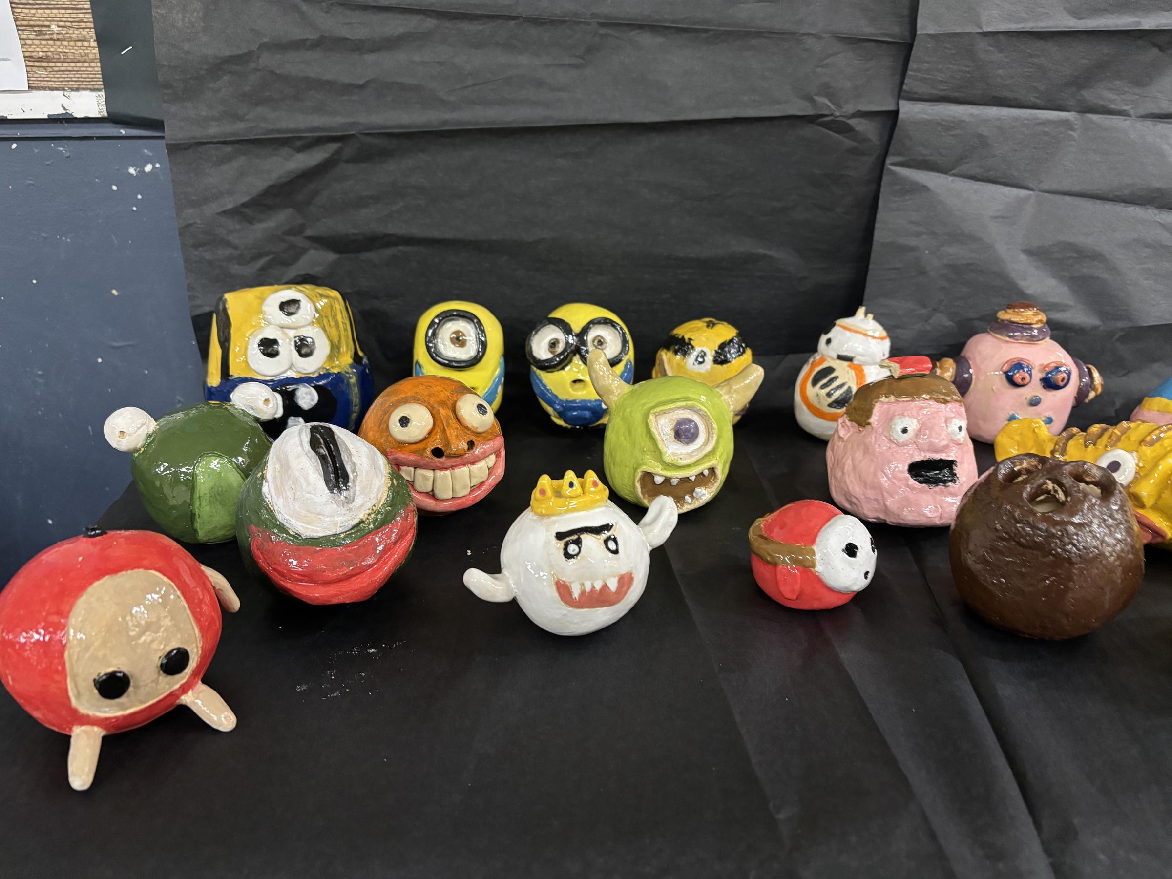 The Year 9 Ceramic double pinch pot character head project has been completed with a glaze fire. Students have done a fantastic job. They will be on display at parent teacher conferences.