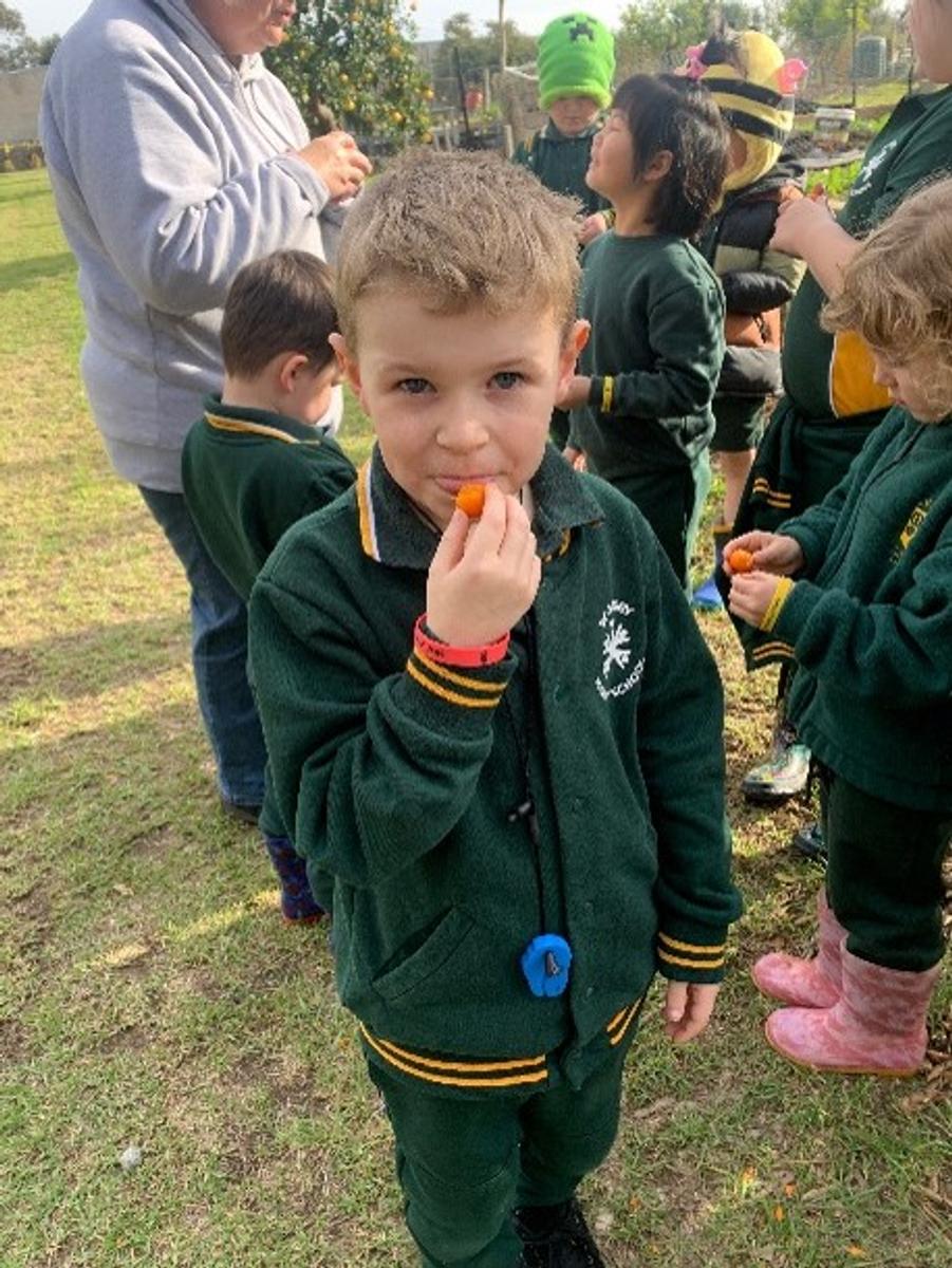 On Monday, the Foundation students spent the morning at the Knox Community Gardens as part of the Healthy Eating So Kids Thrive program. We were so lucky to have beautiful sunny weather as the students tasted honey near the beehive, planted lettuce seedlings, learnt about the role of worms in composting, and helped to make Japanese pancakes. Thank you to our parent helpers who helped make the morning run smoothly.