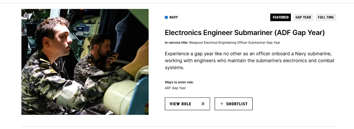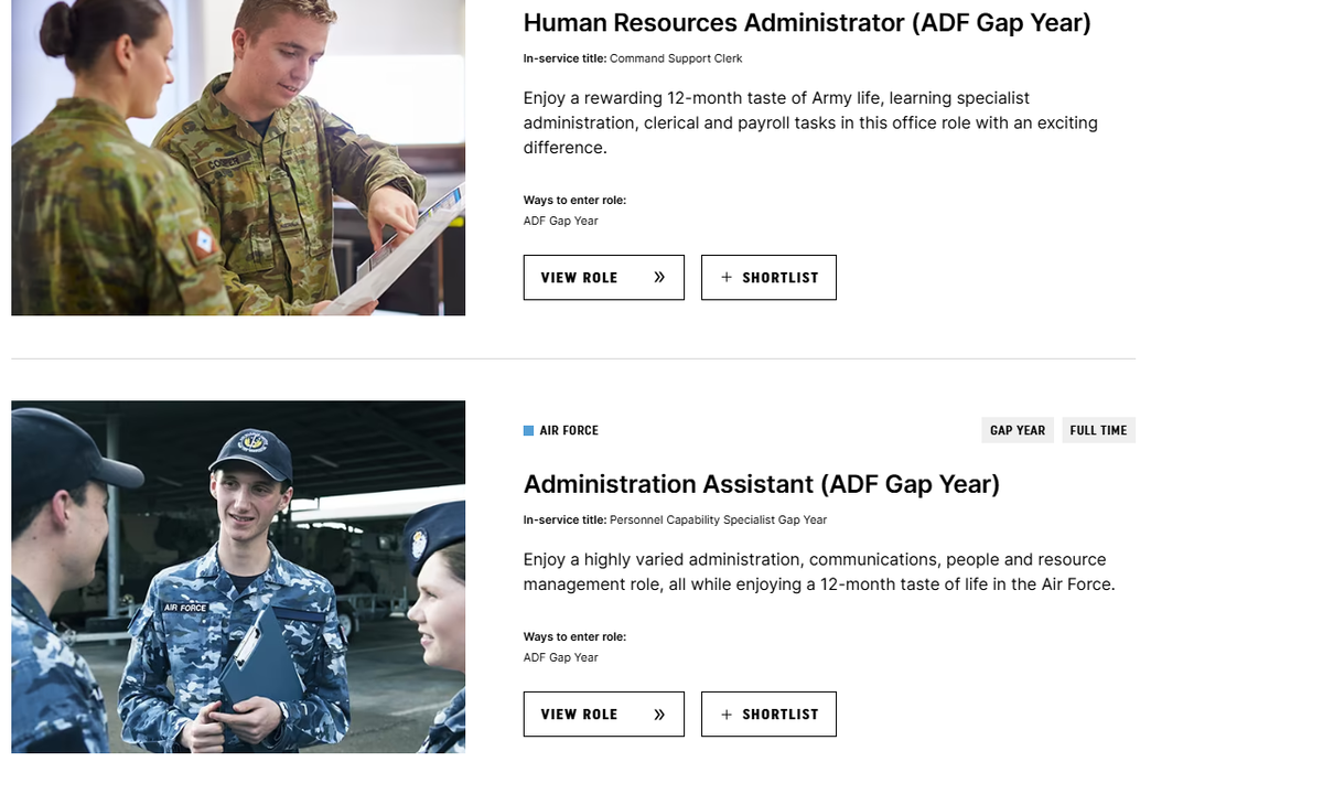 Please click on link above to see a lot of gap year opportunities in the ADF.