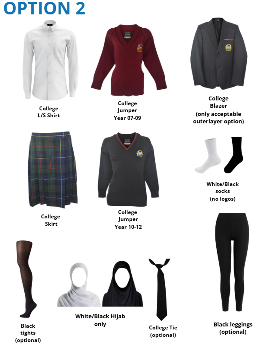 The manner in which the uniform is worn must reflect pride in the College. This means it must be clean, in good repair, appropriately fitted and worn without non-uniform items, including non-approved make-up and jewellery.