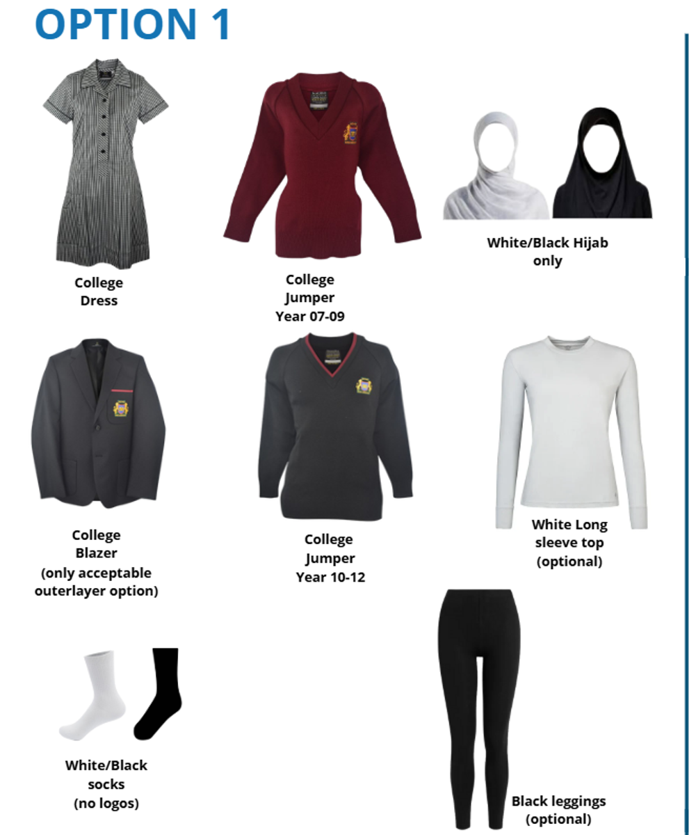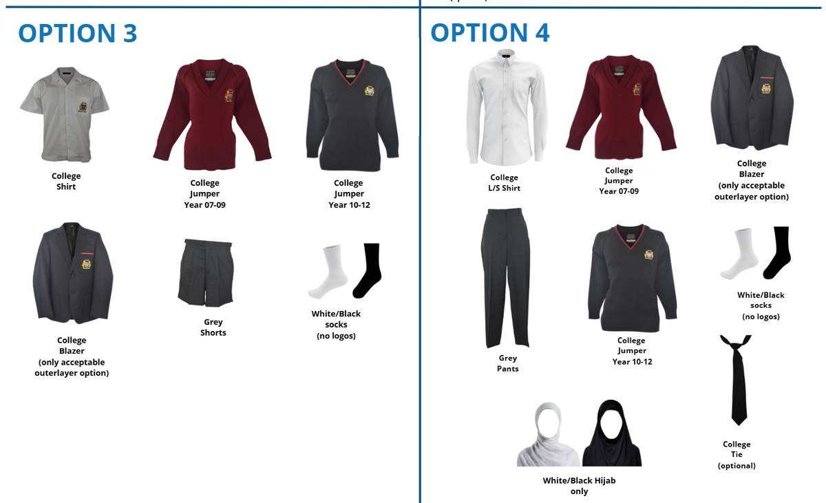 Students may apply for an exemption to wearing or modifying individual items of the College uniform due to financial (CSEF and/or SSR), medical and/or cultural reasons. Eligible students are to discuss the reasons why they would like an exception to the uniform policy with the relevant sub school leader who will then meet with principal and the assistant principal to consider the request and its subsequent management.