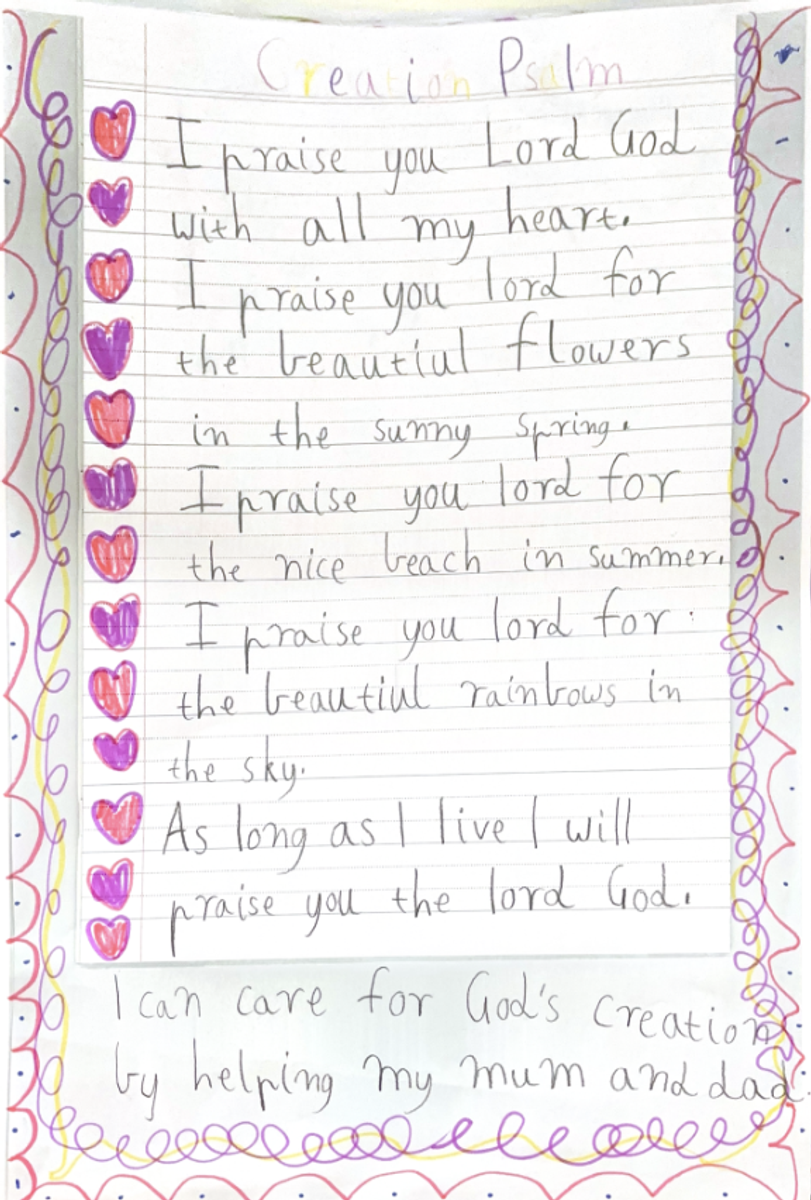 Year 1 learners have written their own Psalms praising God for his gifts of creation.