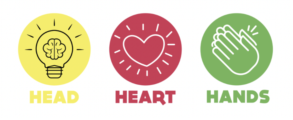 This is achieved using the ‘Head, Heart and Hand’ model.