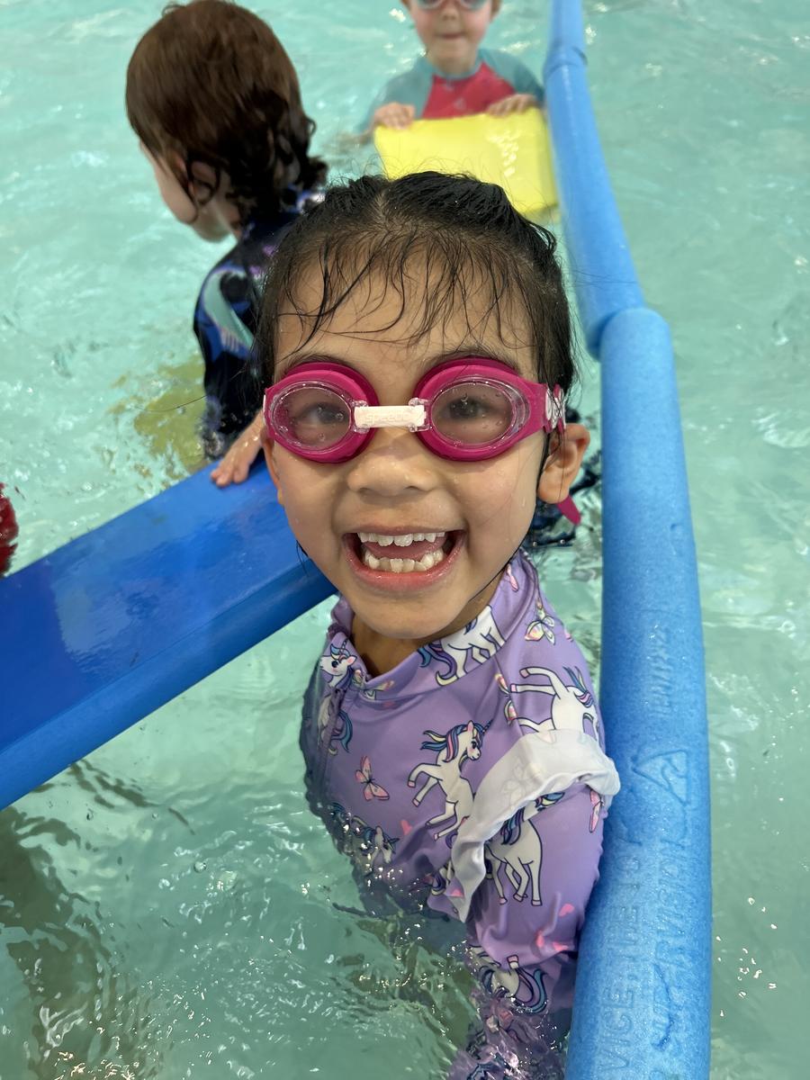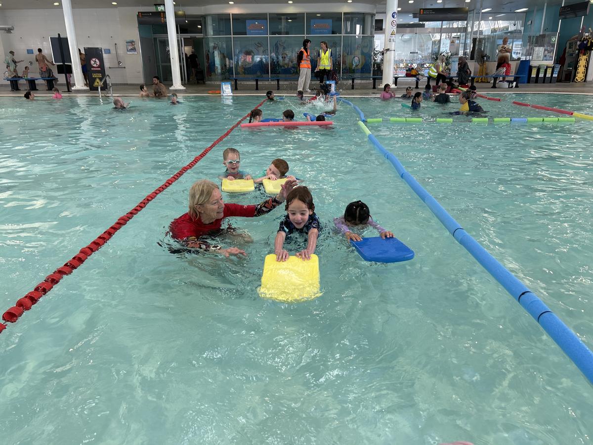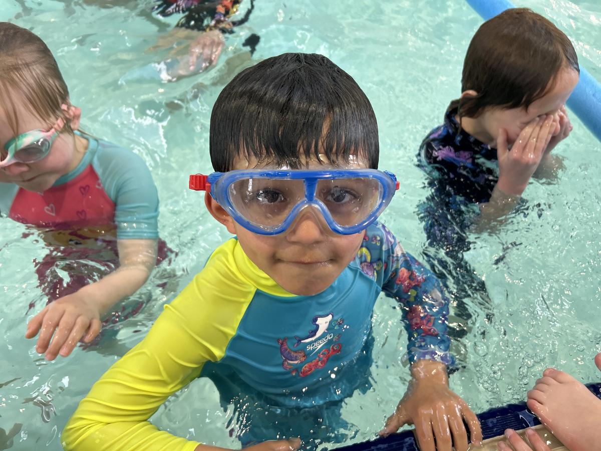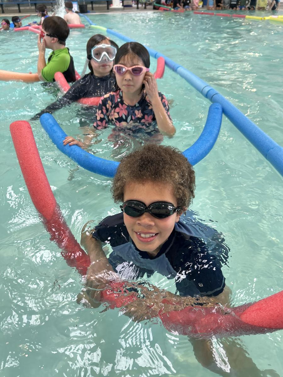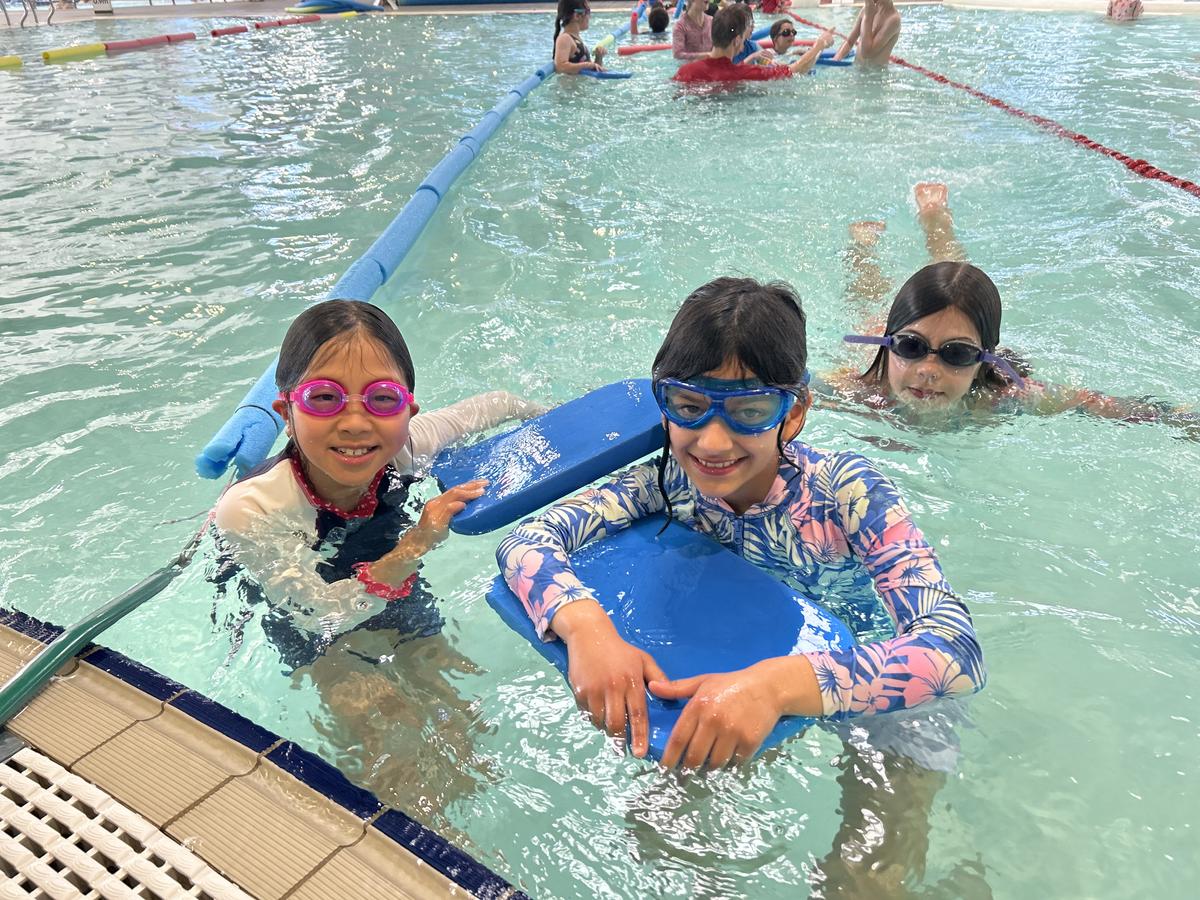 In the pool, students practised important water safety skills - blowing bubbles underwater, floating on their backs, taking a few strokes of freestyle, backstroke, and breaststroke, and even duck diving for sticks.