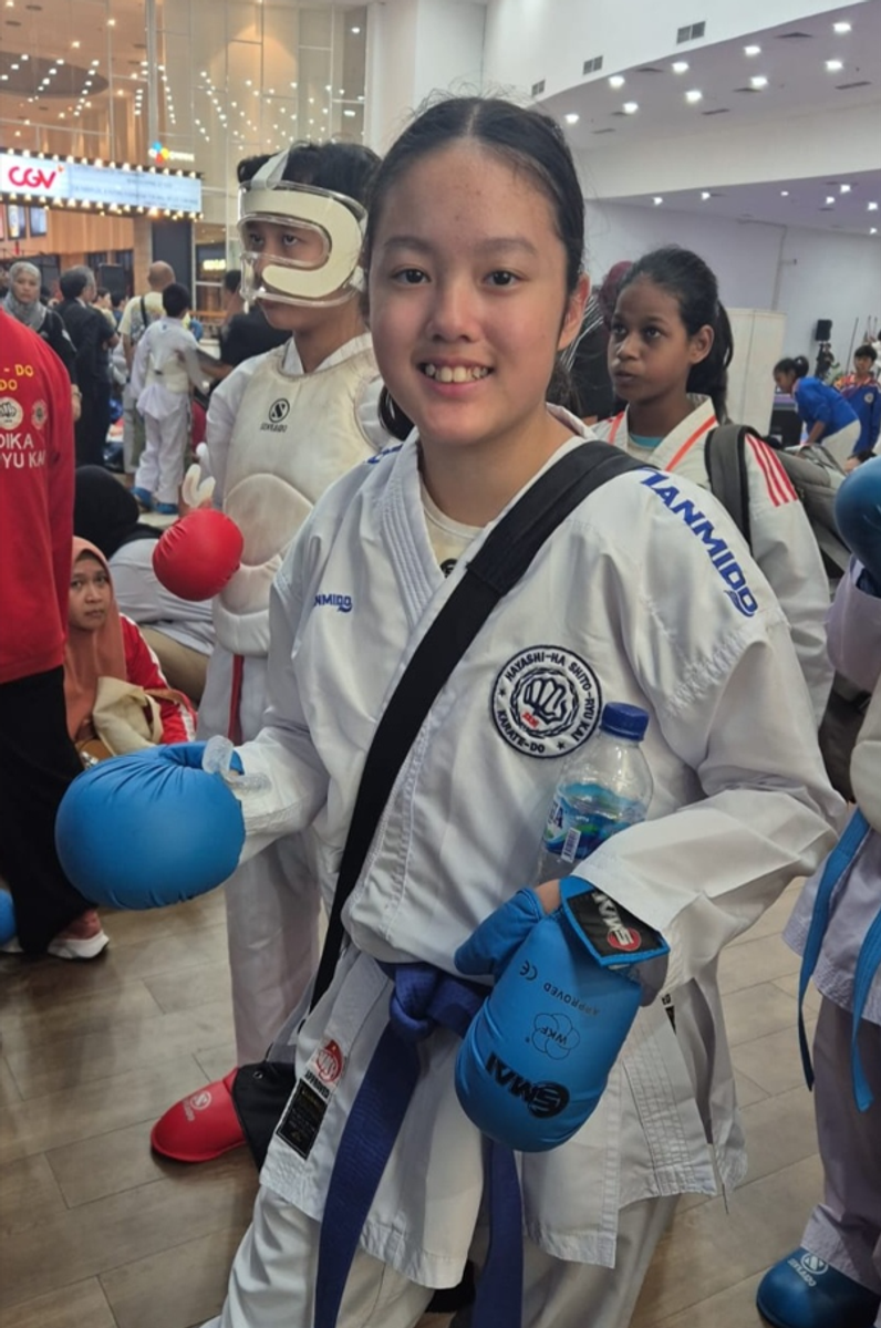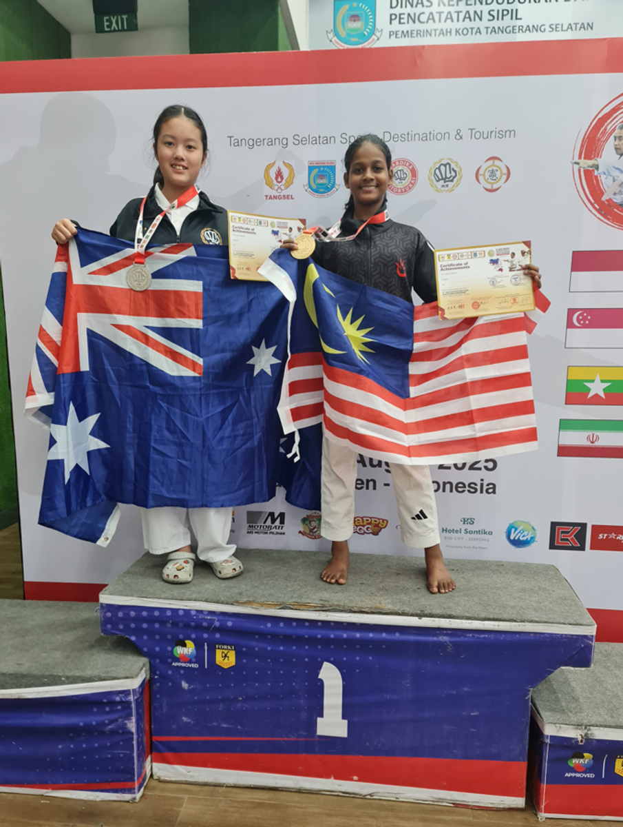Khloe, travelled to Indonesia to compete in the 6th Aspac Karate Championship for her club and country. Representing Australia in her 10-11 years category, and winning 2 preliminary matches, advancing to the Final against Malaysia for a Gold or Silver. Khloe narrowly lost and bravely collected a silver medal in her first International competition overseas.