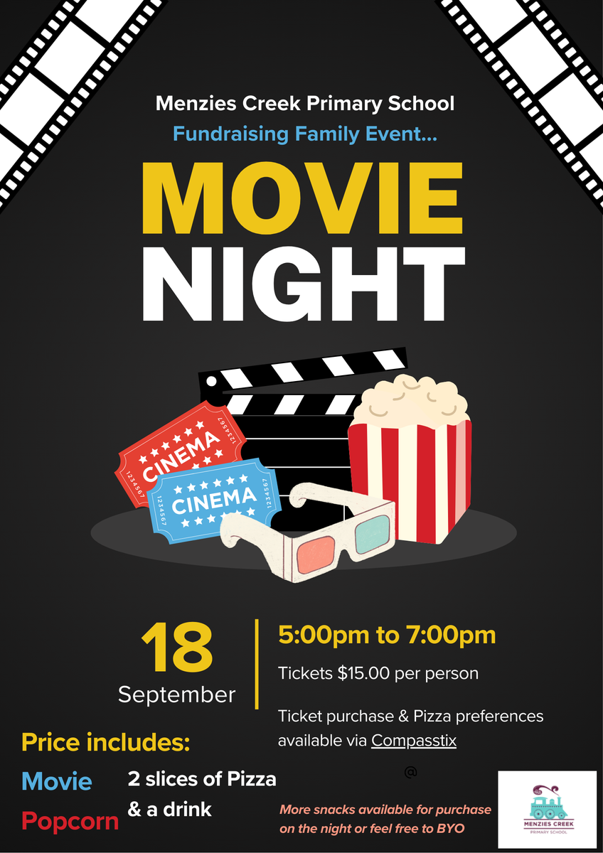 18th September - 5 - 7pm Movie , Popcorn & Pizza night - tickets to be released soon.