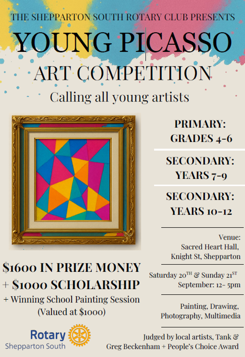 We had some wonderful news during the week - we have an award winner! A huge congratulations to Luke Rooney who has won a prize at the Picasso Art Competition, run by the South Shepparton Rotary Club. Well done to all our entrants into the competition. You can see an in-progress shot of Luke's artwork below. His final piece can be viewed at the exhbition that is on this weekend, as well as all our entrant's artworks.