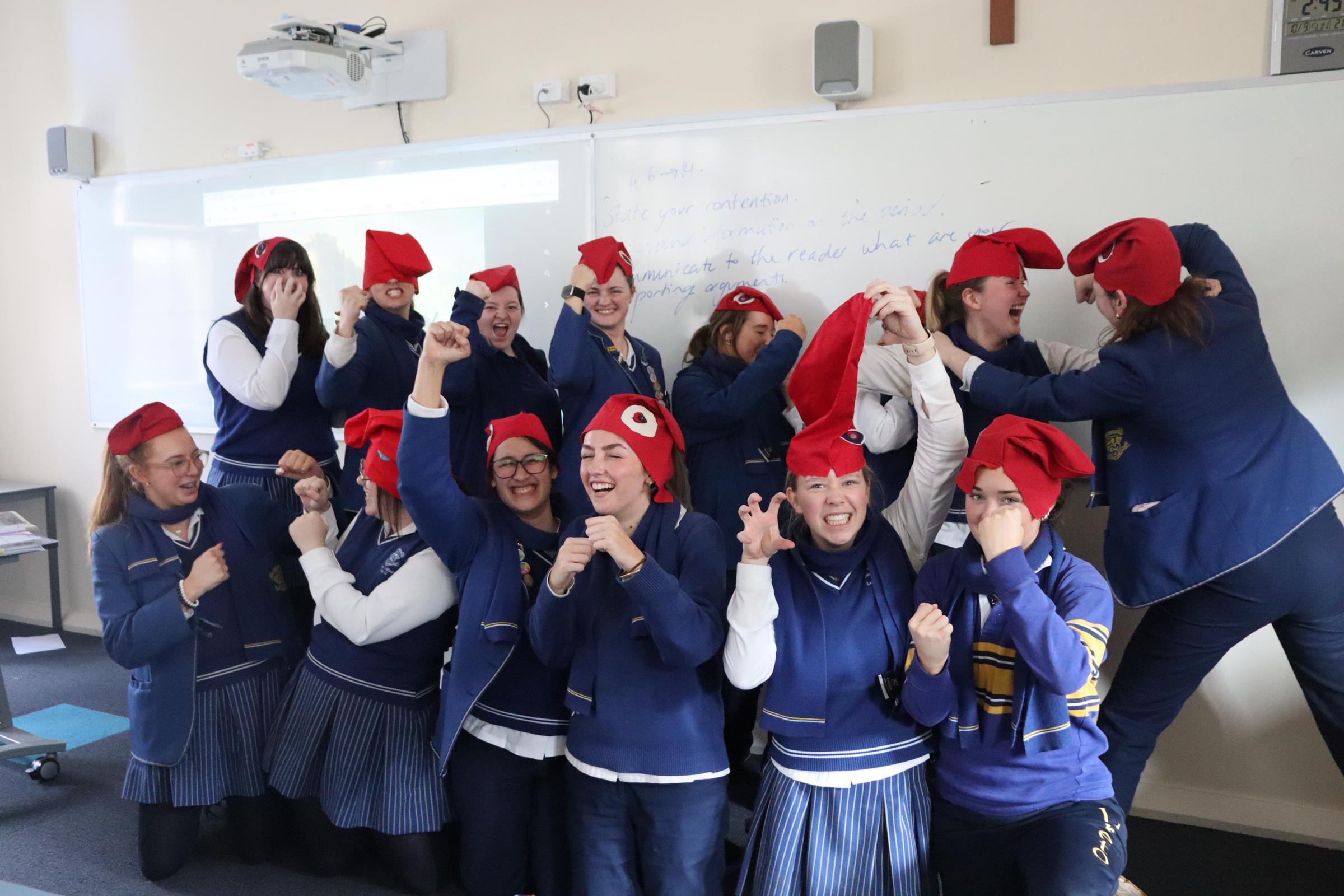 To enhance the learning about the French Revolution the Unit 4 History Revolutions students dressed in Revolutionary caps and enjoyed an afternoon of French food and revolutionary ideas. Much discussion and enjoyment was had by the class.