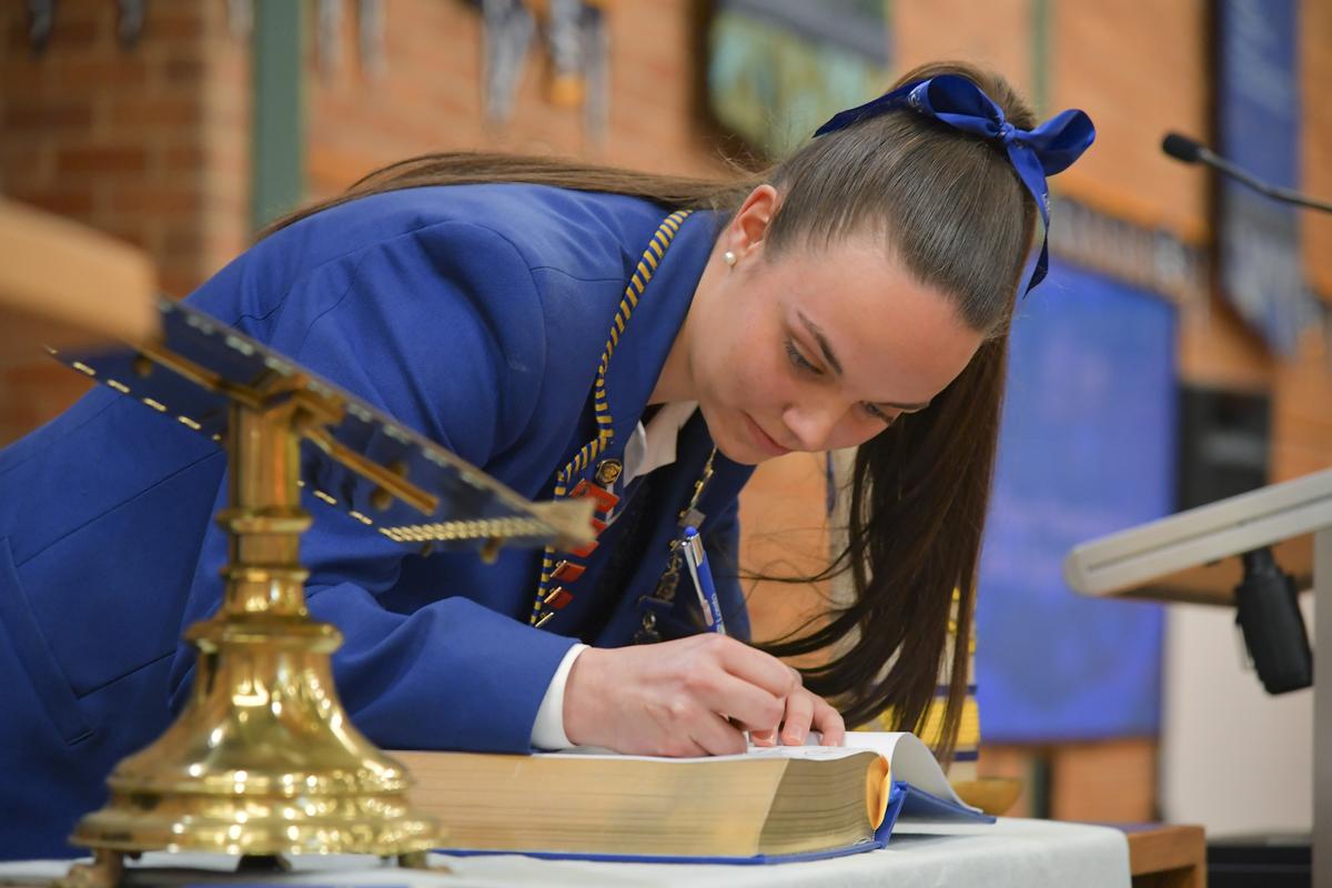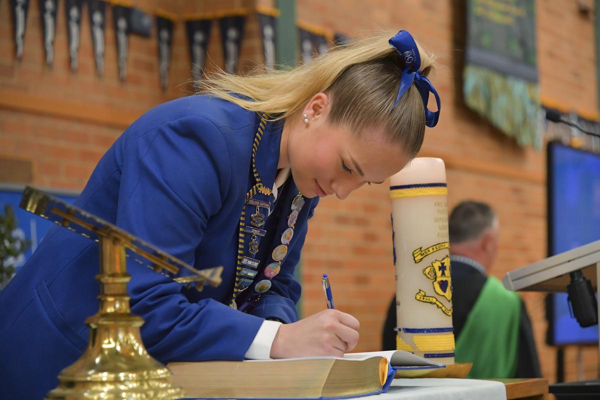 In our 150th year Mass, we introduced a new Bible, as a mark of our future. At the Assembly our new leaders read their pledge to serve and lead their peers, whilst our outgoing leaders signed the new Bible as a symbolic gesture to acknowledge the blessings of their leadership, and as a final mark of the transfer of leadership, the Captains blazers were presented.