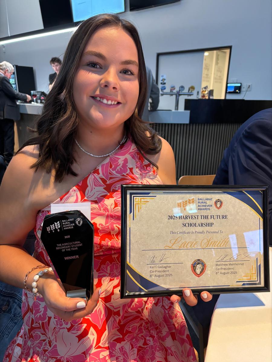Congratulations to Year 12 student, Lacie Smith, who’s just been named Agricultural Secondary Student of the Year by the Ballarat Agricultural and Pastoral Society!
