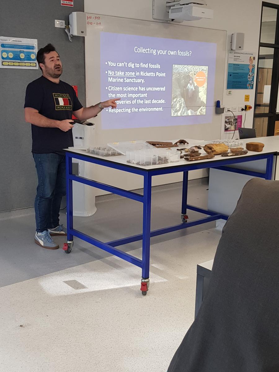 At the end of last term, Year 9 & 10 DNA to Dinosaurs students discovered life in Beaumaris Bay from 5 million years ago. Palaeontologist Ben Francischelli shared his fossil finds and explained how he studies them.