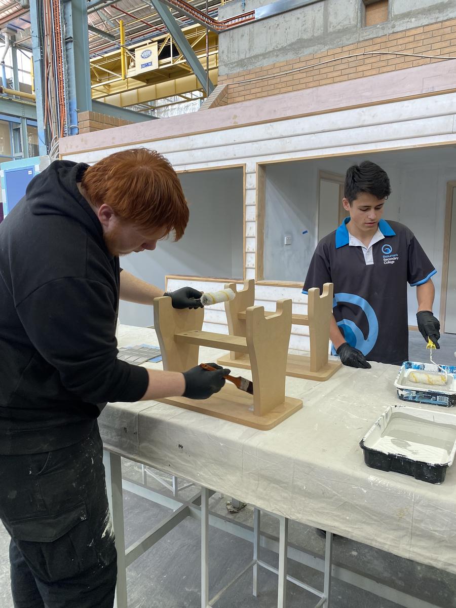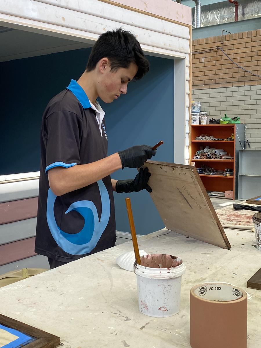 Our Year 10 students are continuing their Construction Pathways program, this time getting hands-on with painting and staining. Provided by the Department of Education, this practical taster allows students to further explore VET subjects and gain insight into careers in fields such as tiling, carpentry, bricklaying, and stonemasonry.