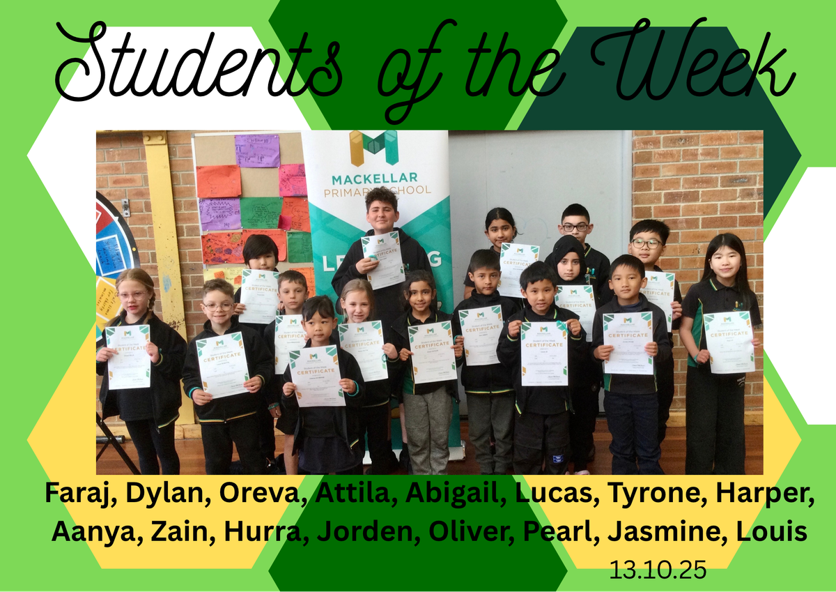 | Tyrone | 1B | having a great start to term 4 and showing amazing resilience when passing a ball during physical education. Keep up the effort! |