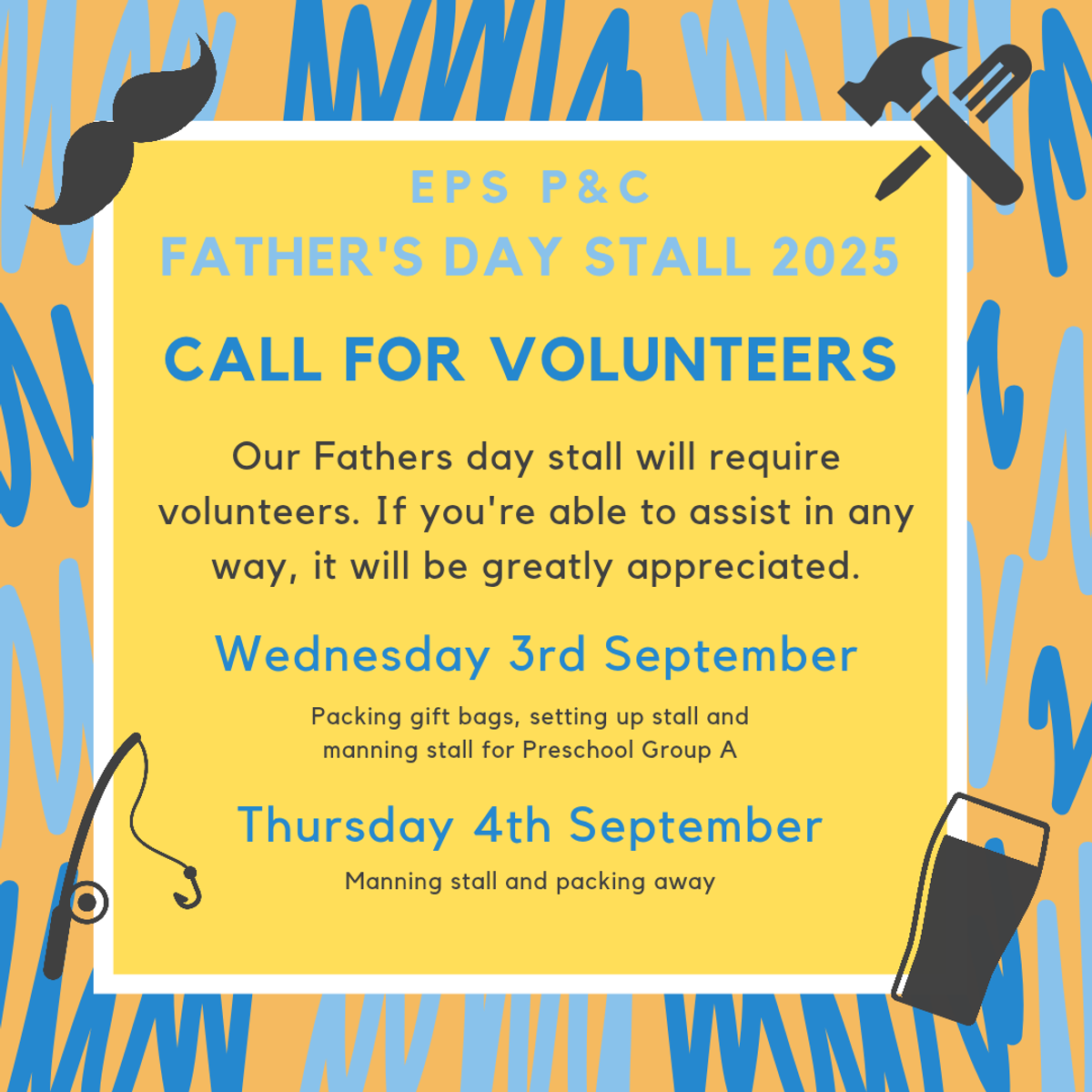 Canteen Volunteers Needed! Our school canteen is looking for friendly, reliable volunteers to help out between 8:30am and 2:30pm on school days. Even a few hours of your time can make a big difference! If you're interested in helping, please contact our Canteen Manager, Jen, by contacting the school office or sending an enquiry to eps_canteen@live.com.au. Your support is greatly appreciated!