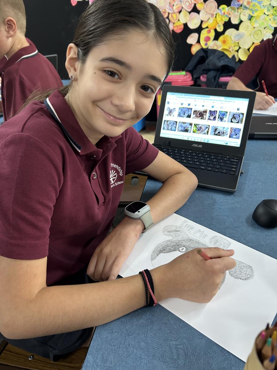 Year 5 students have completed their Australian native animal wildlife posters, incorporating text to raise awareness about protecting endangered species.